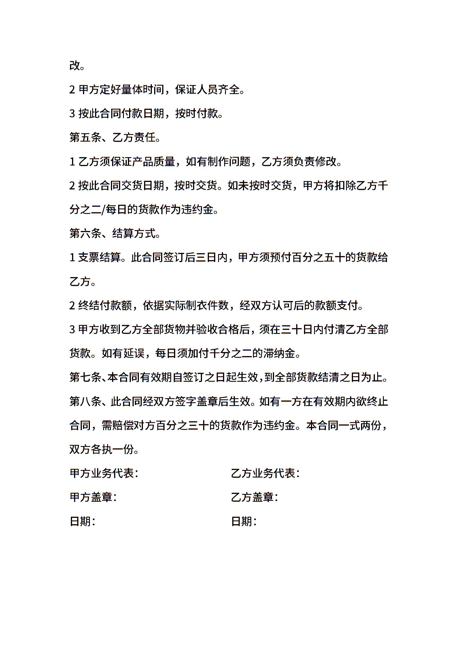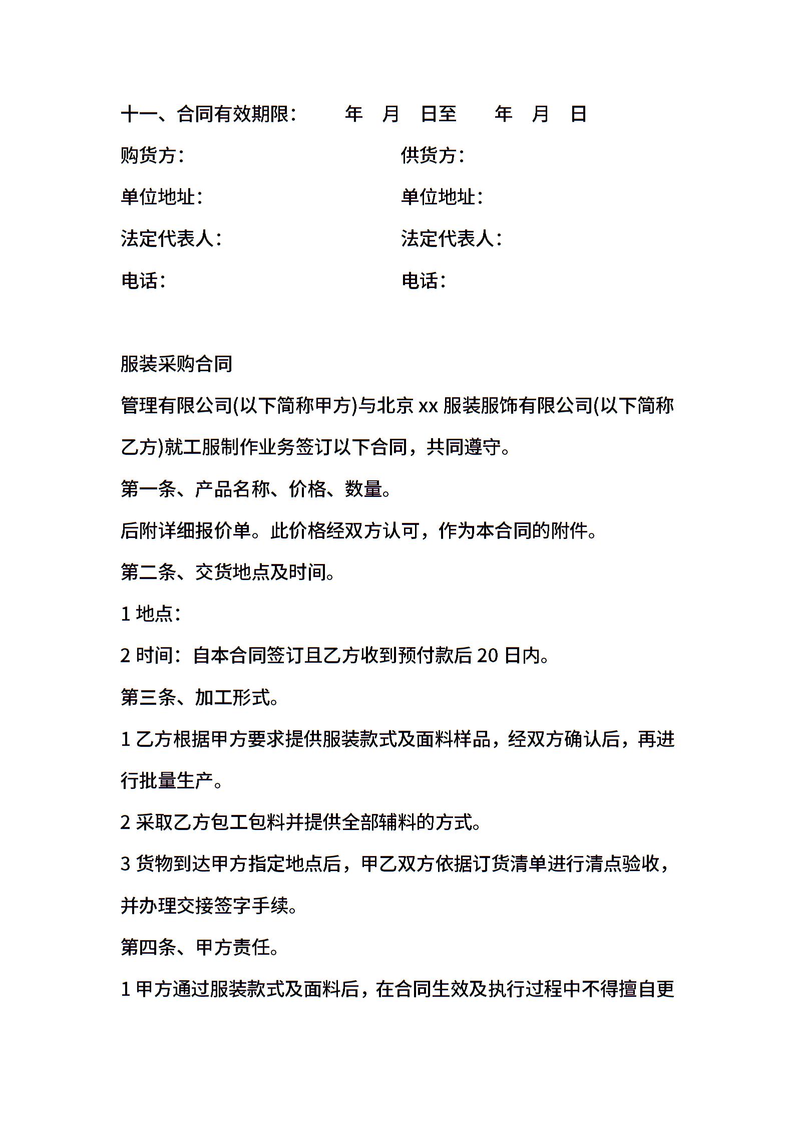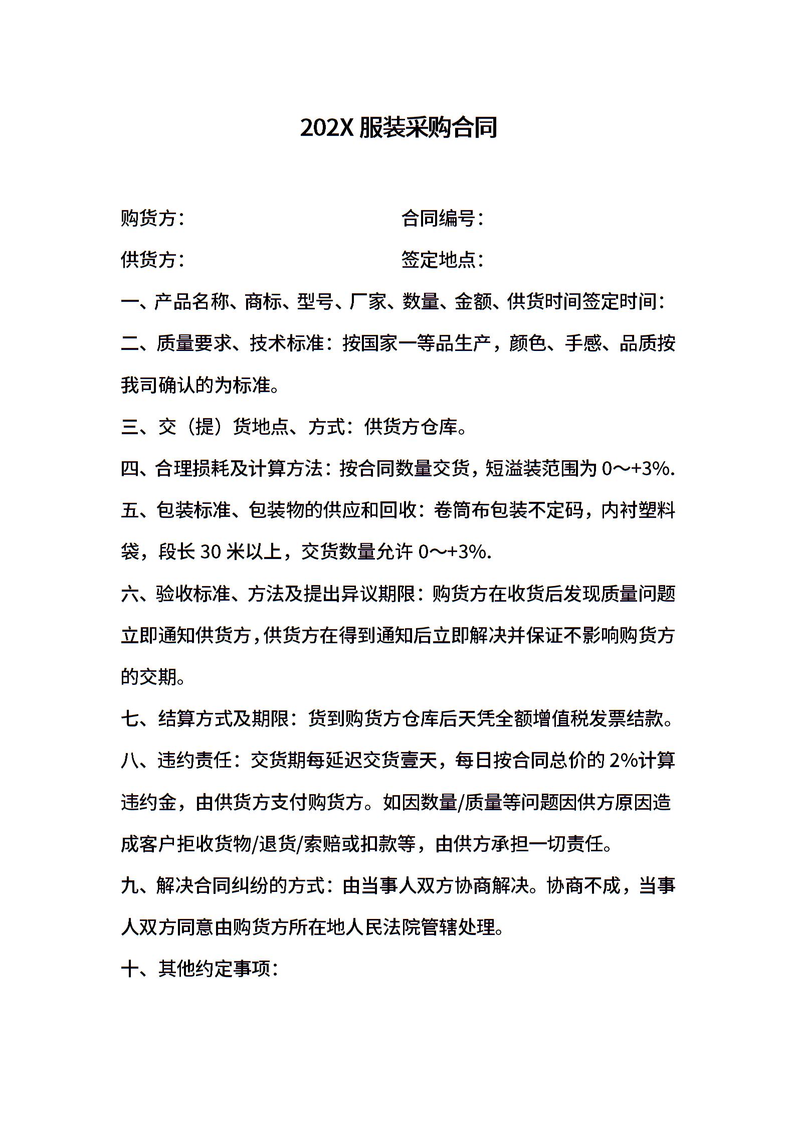 202X服装采购合同