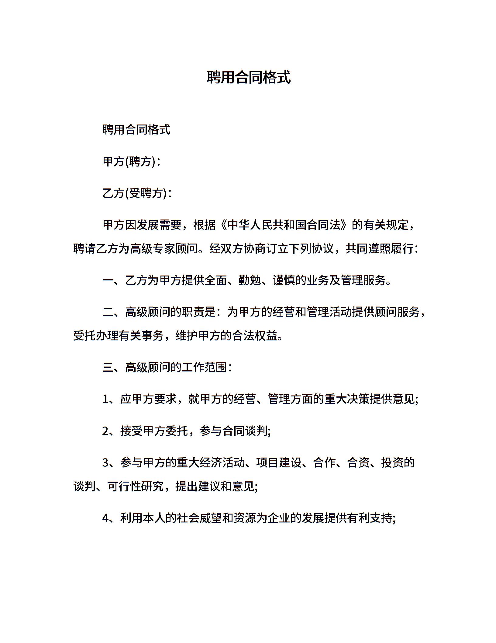 聘用合同格式