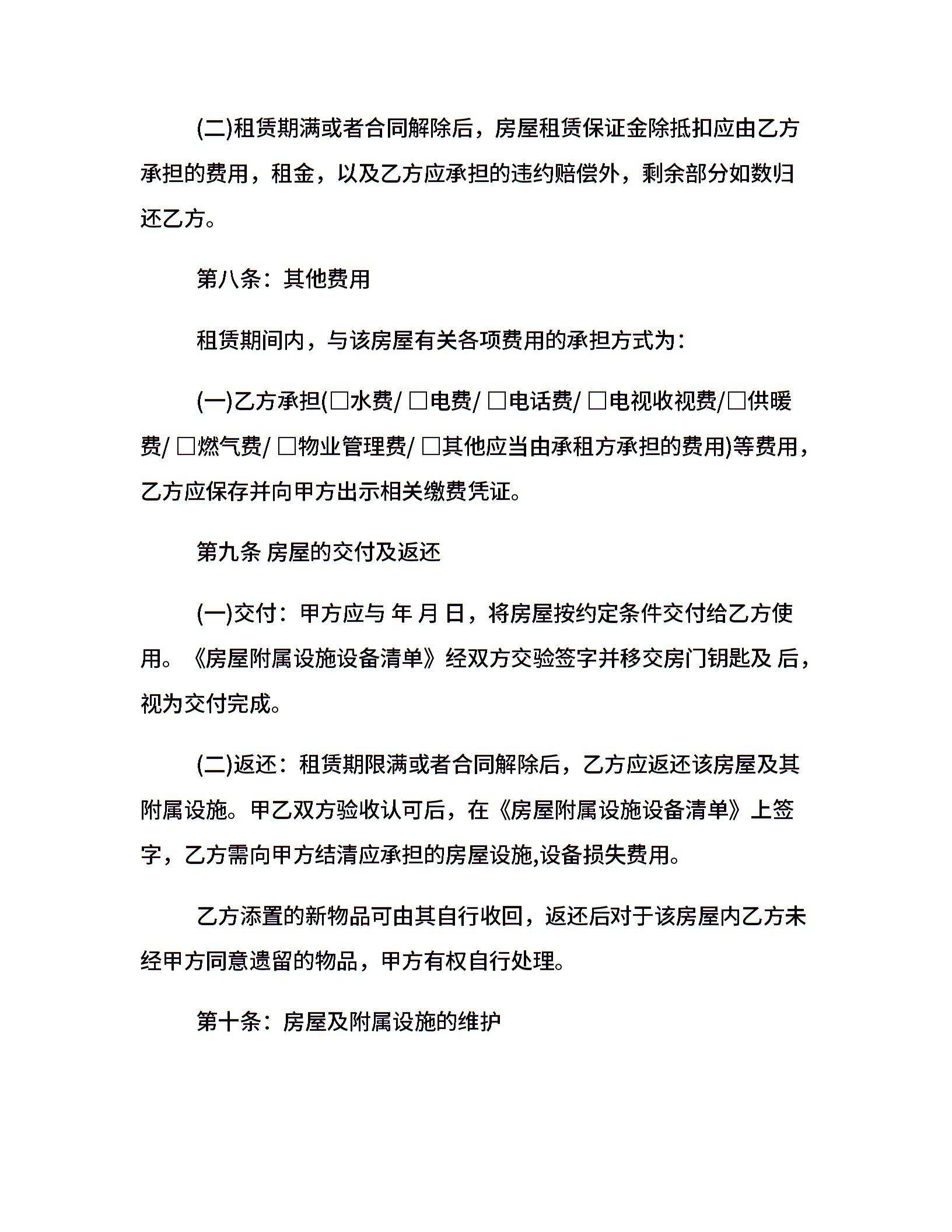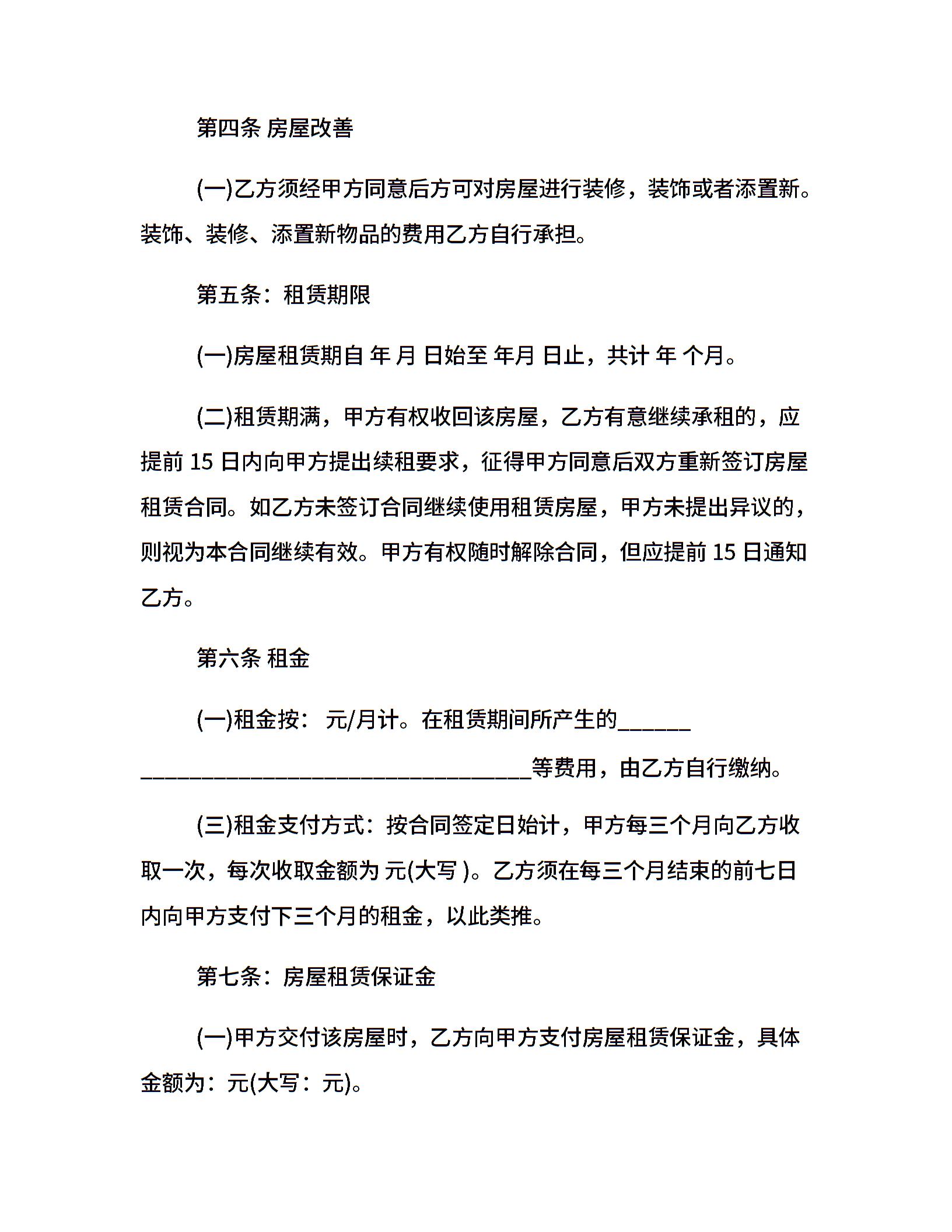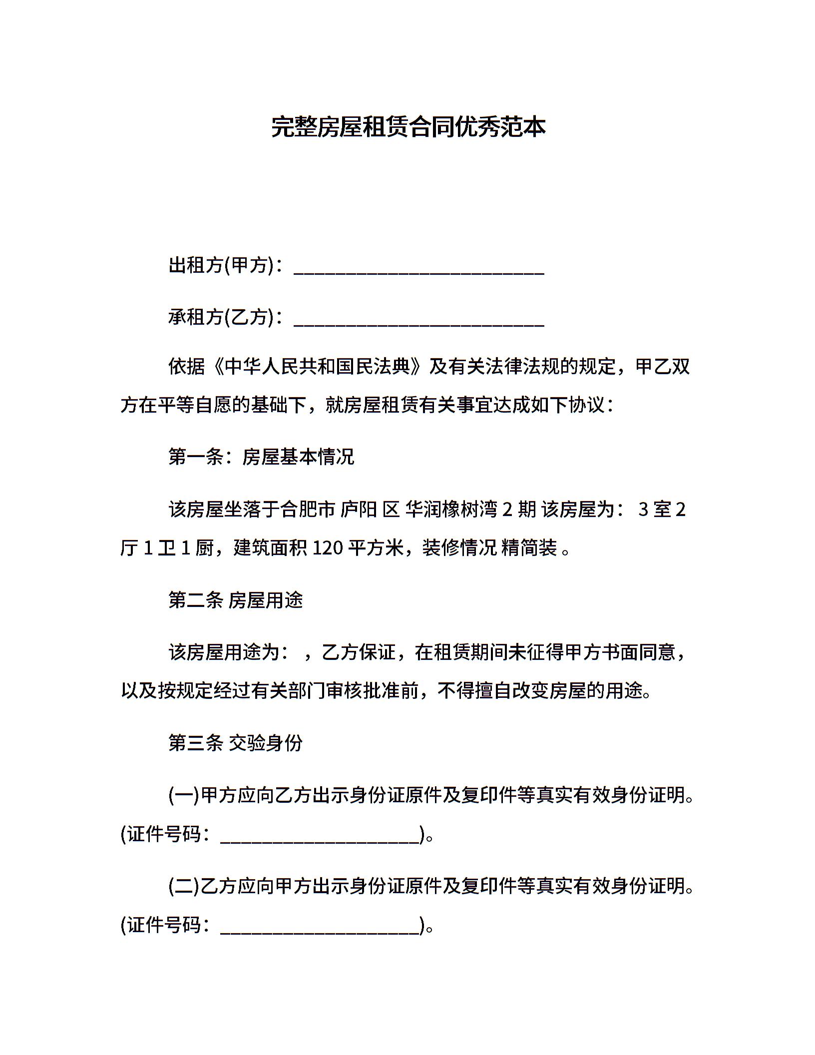 完整房屋租赁合同优秀范本