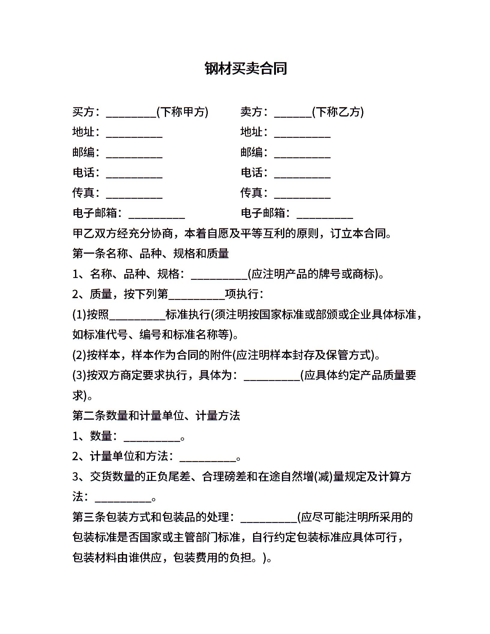 钢材买卖合同