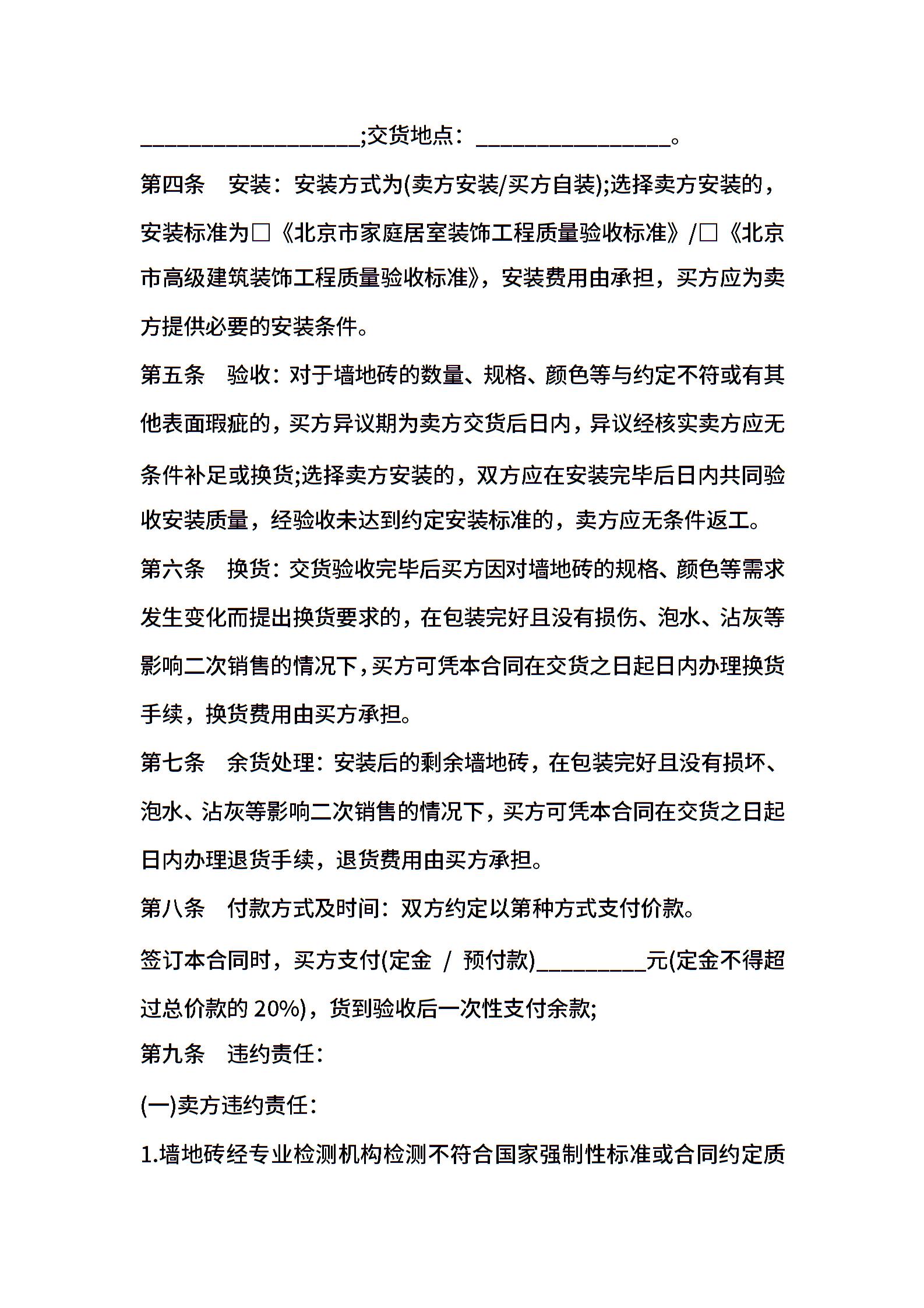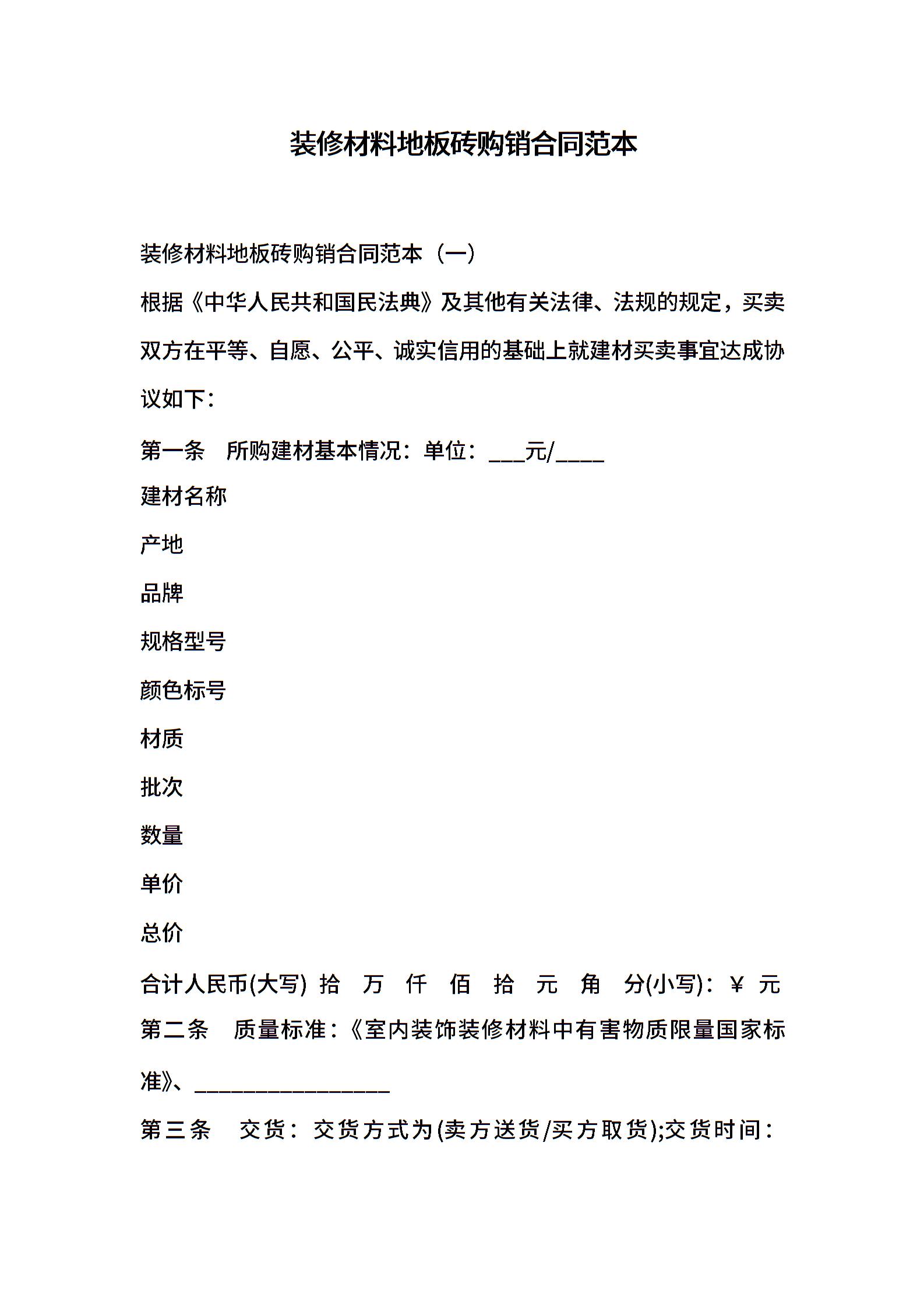 装修材料地板砖购销合同范本