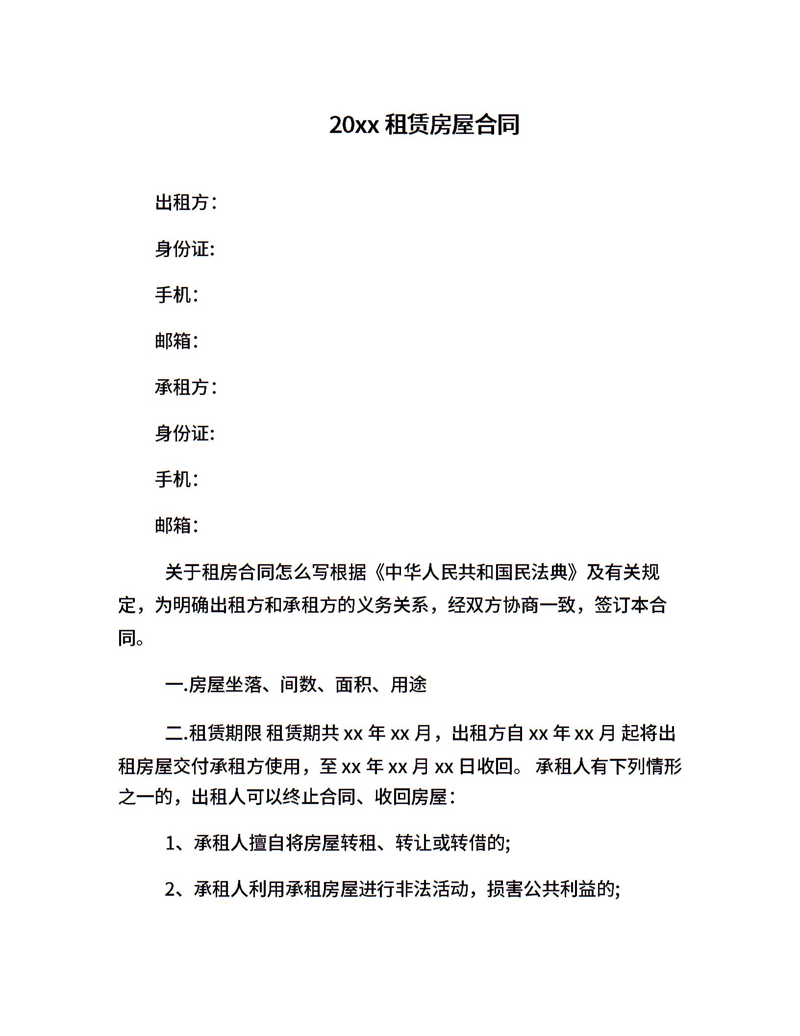 20xx租赁房屋合同