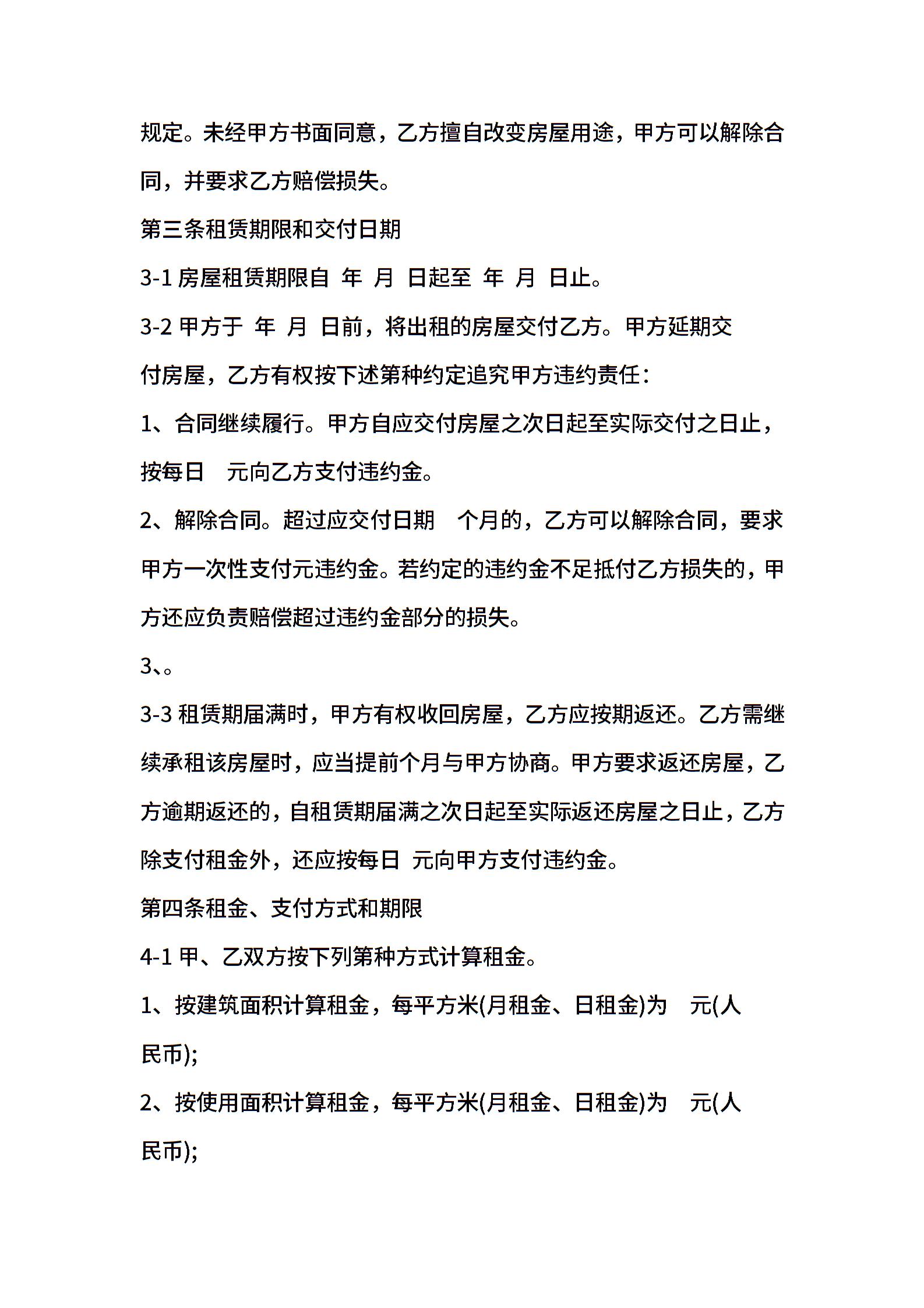 天津市房屋租赁合同