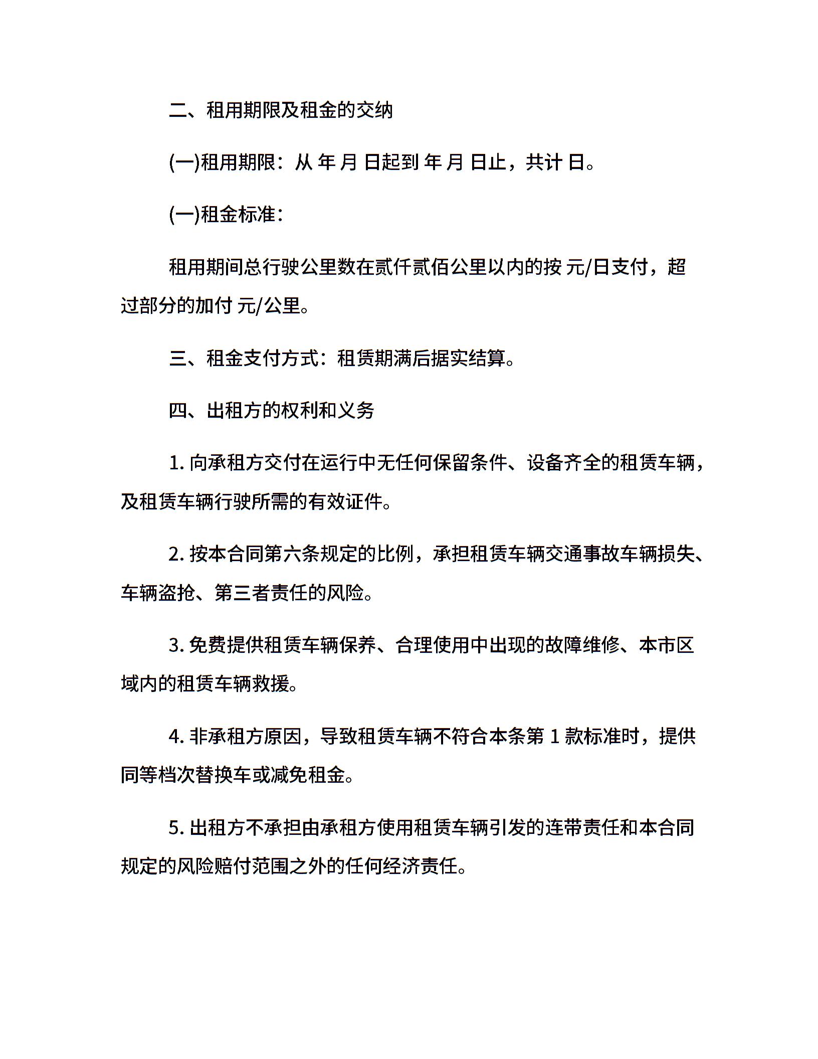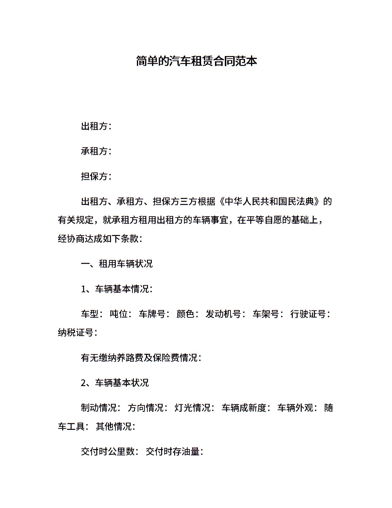 简单的汽车租赁合同范本
