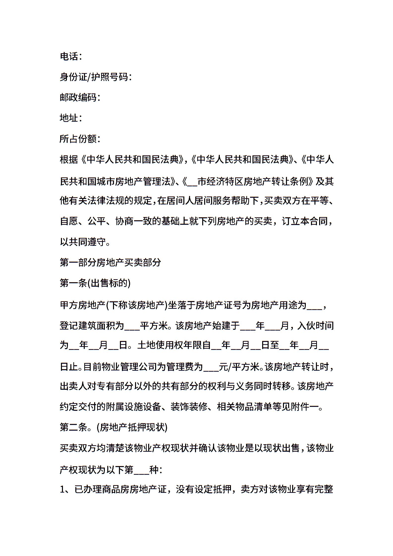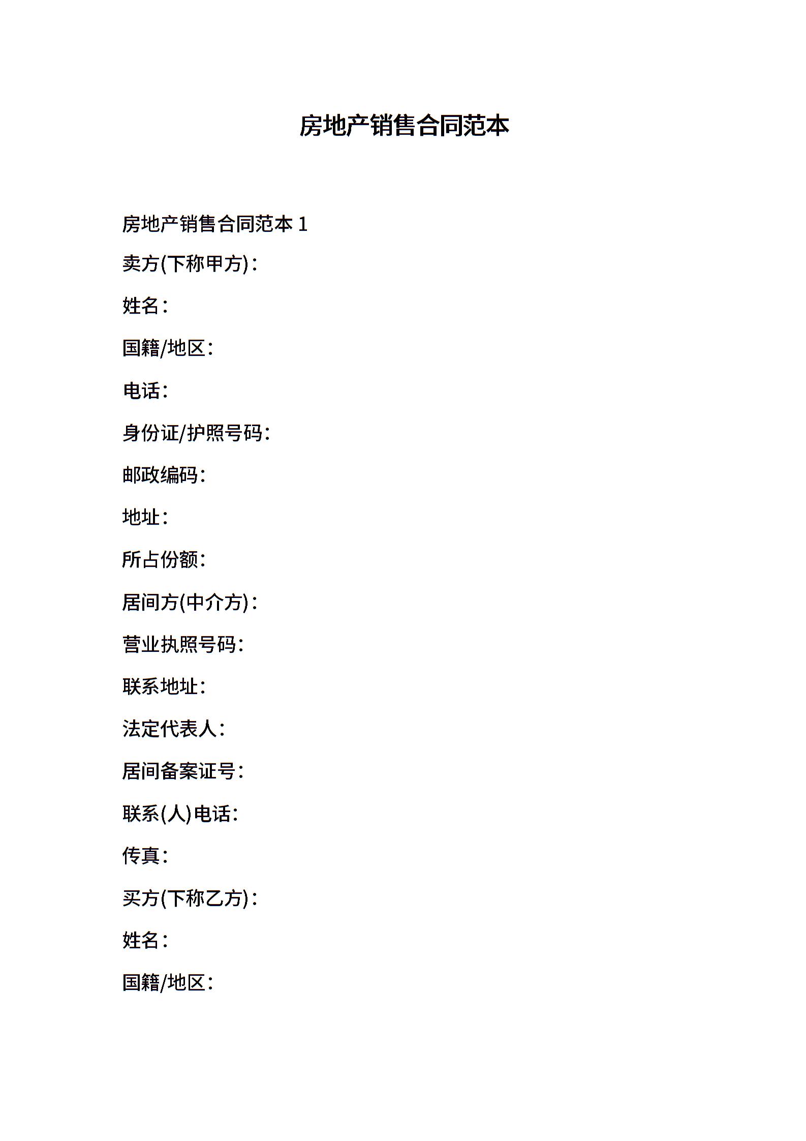 房地产销售合同范本