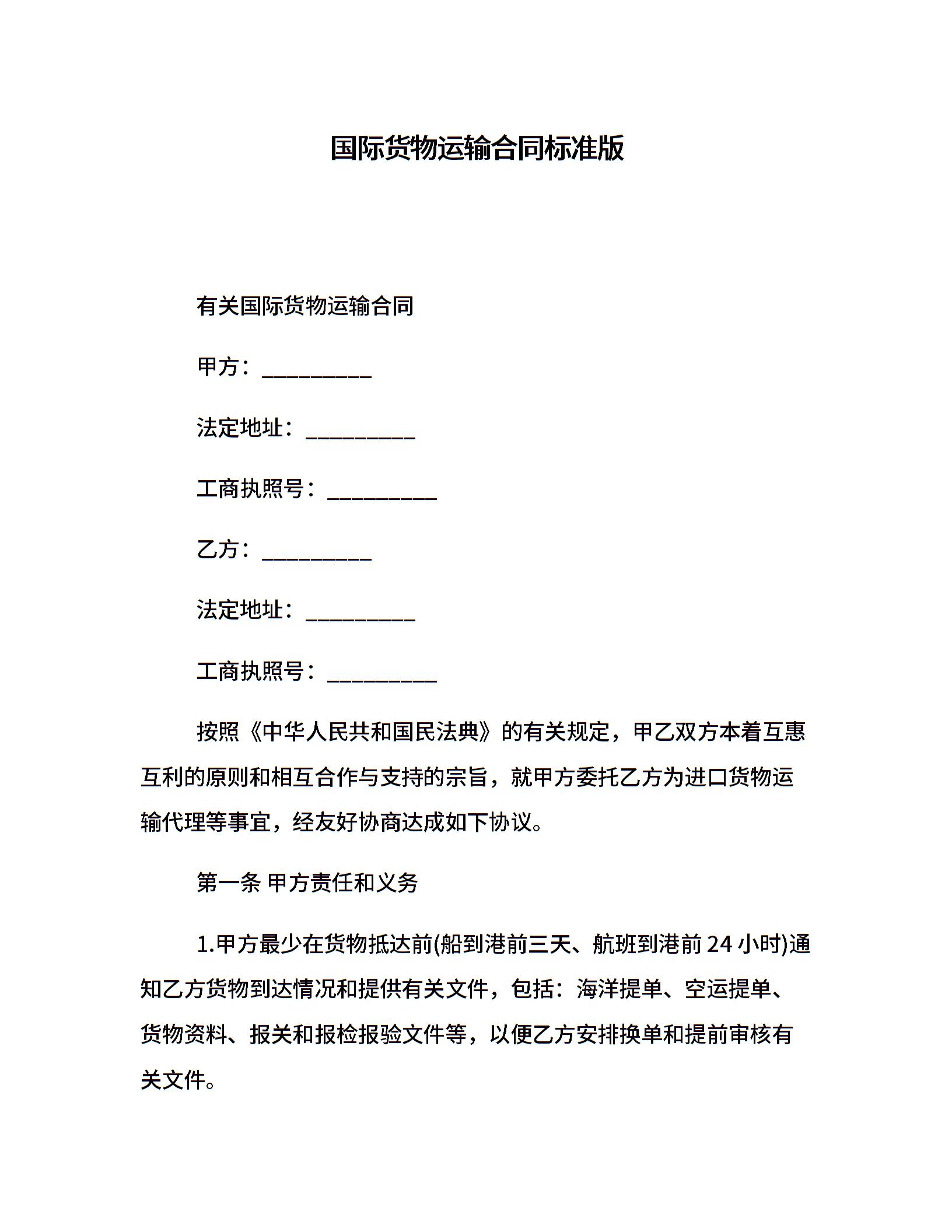 国际货物运输合同标准版
