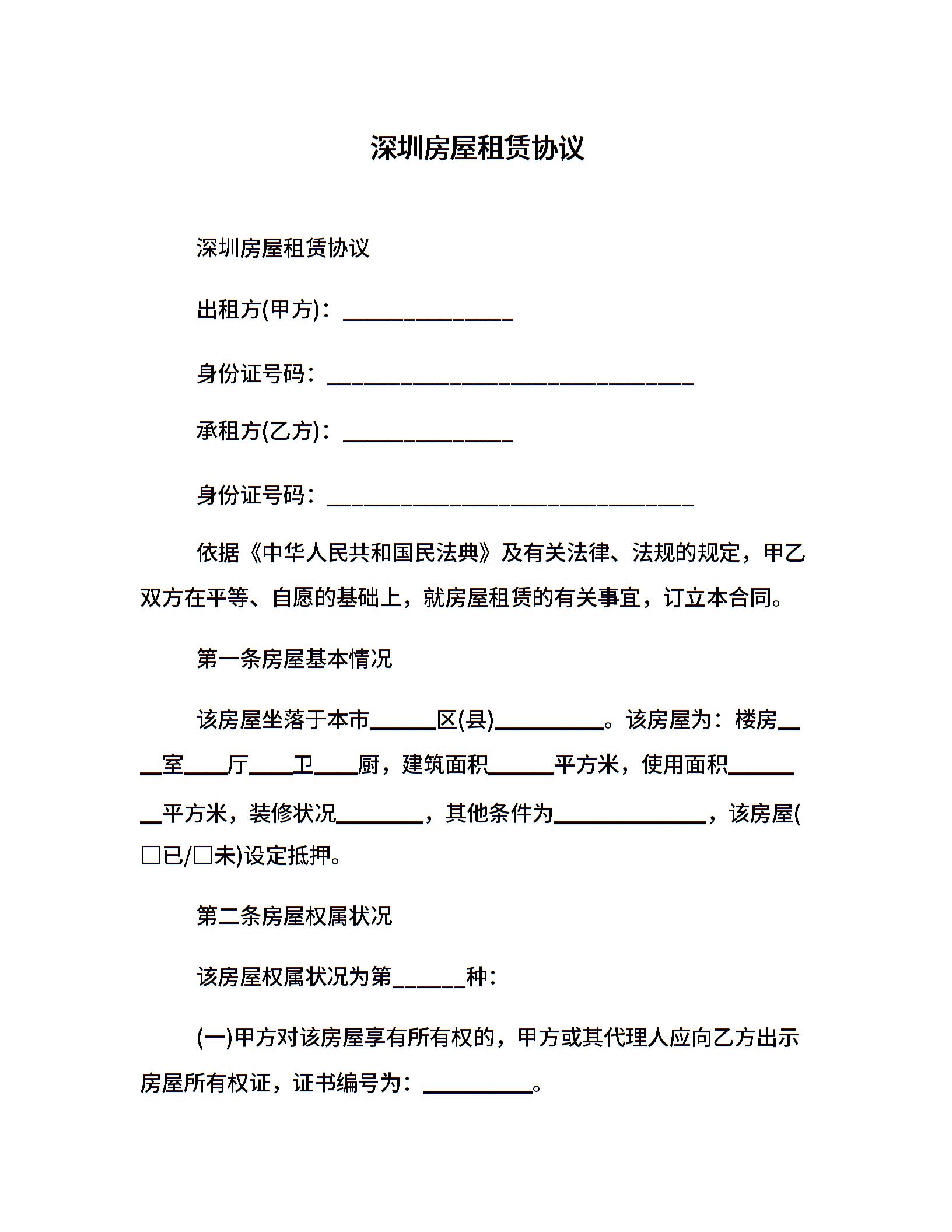 深圳房屋租赁协议