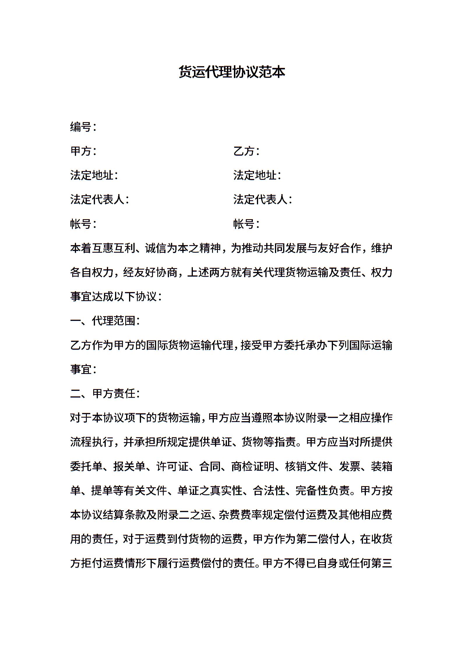货运代理协议范本