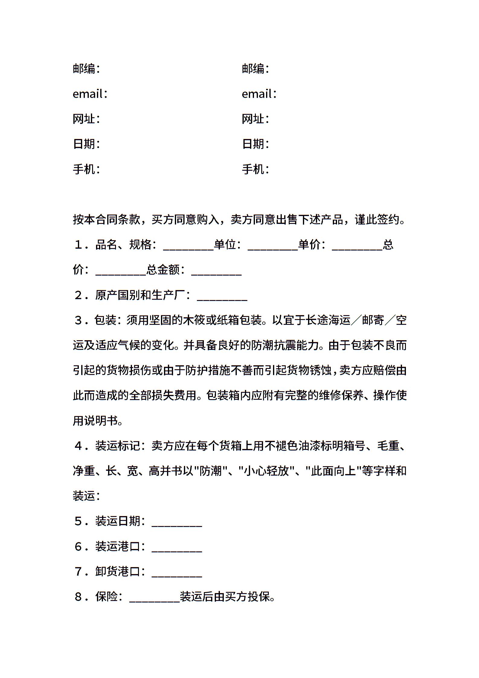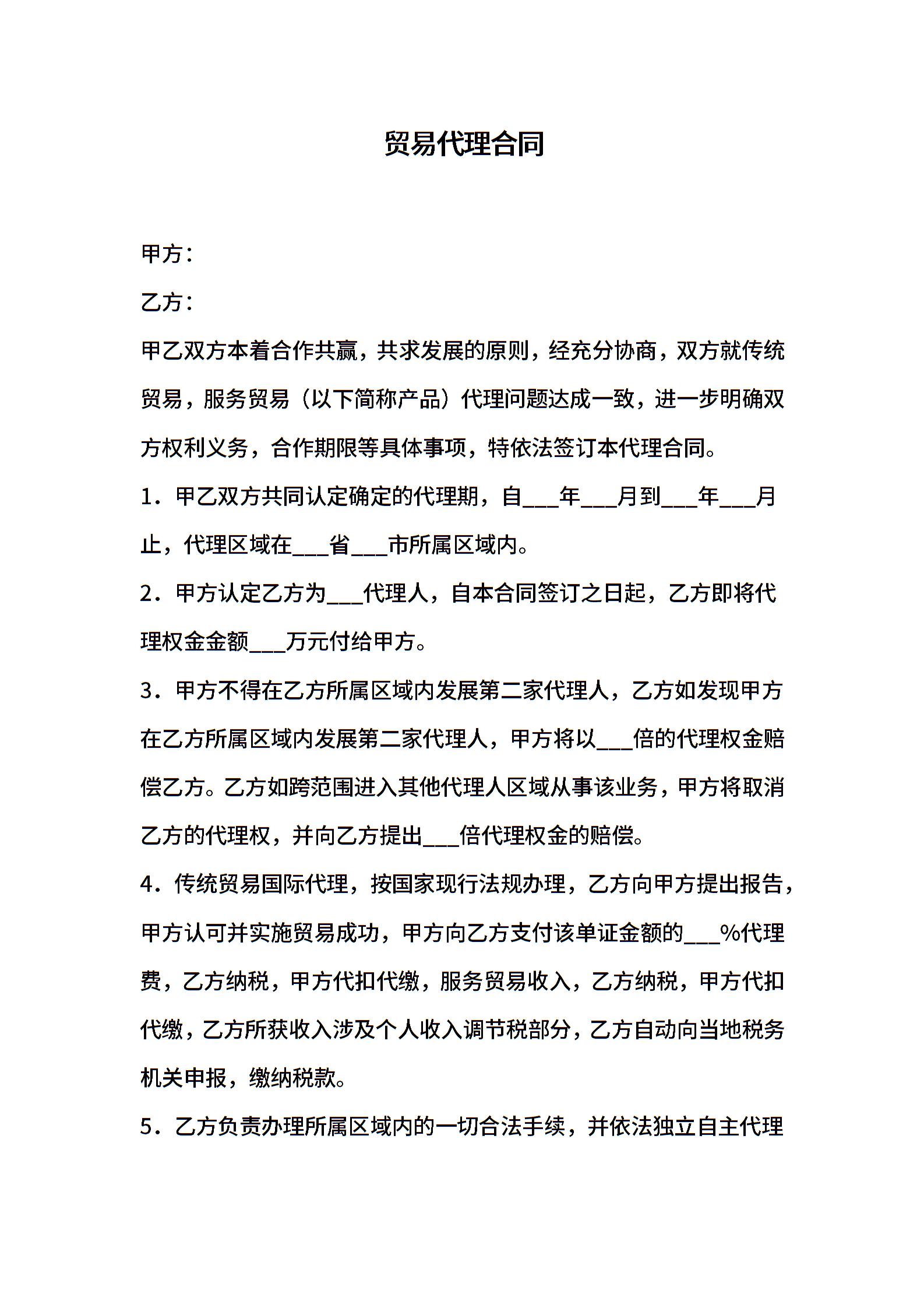 贸易代理合同模板