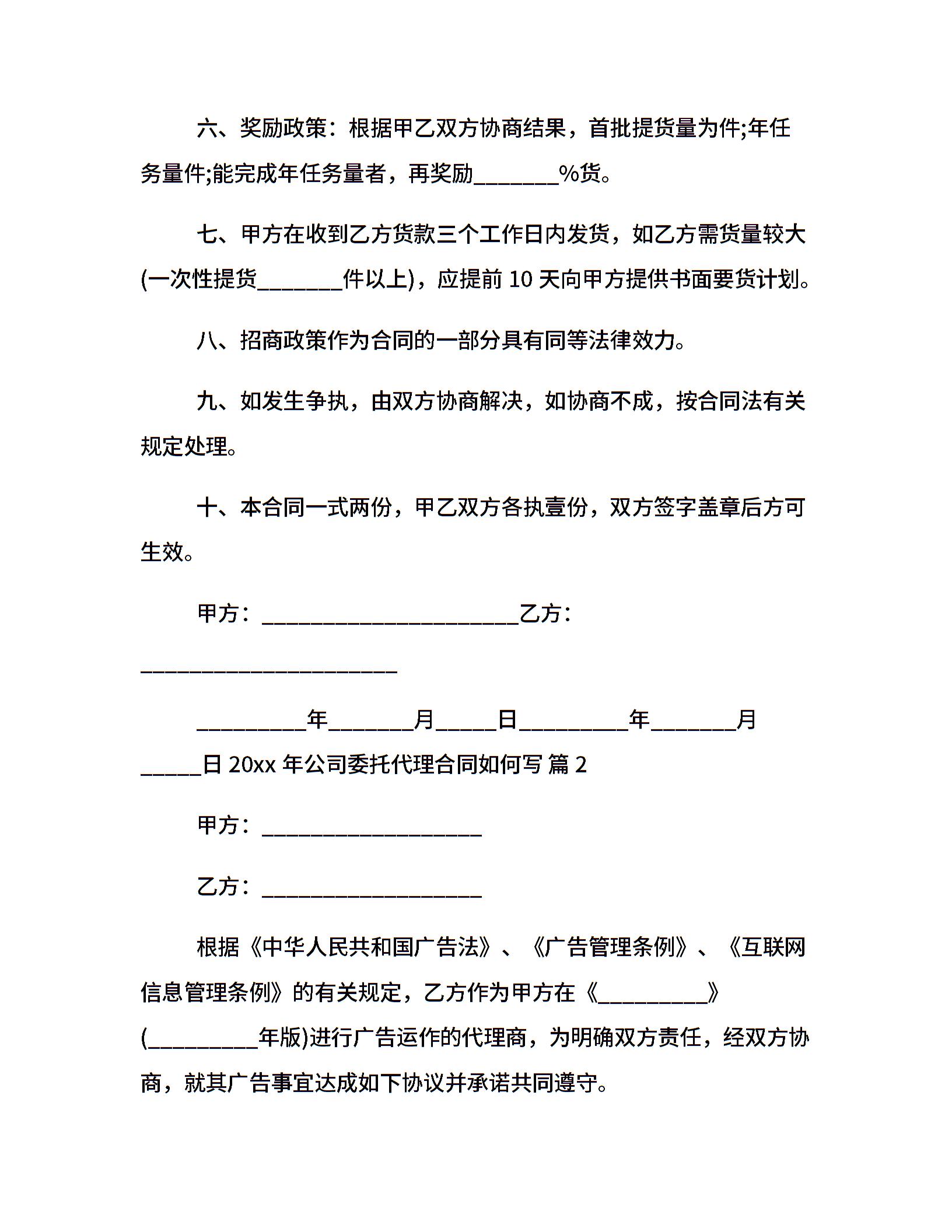 20xx年公司委托代理合同如何写