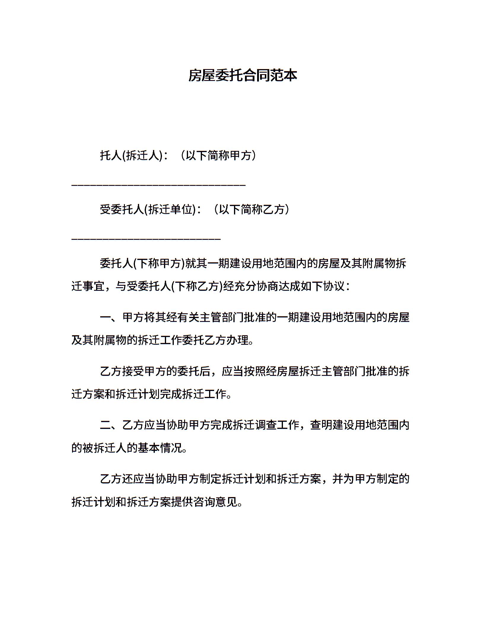 房屋委托合同范本