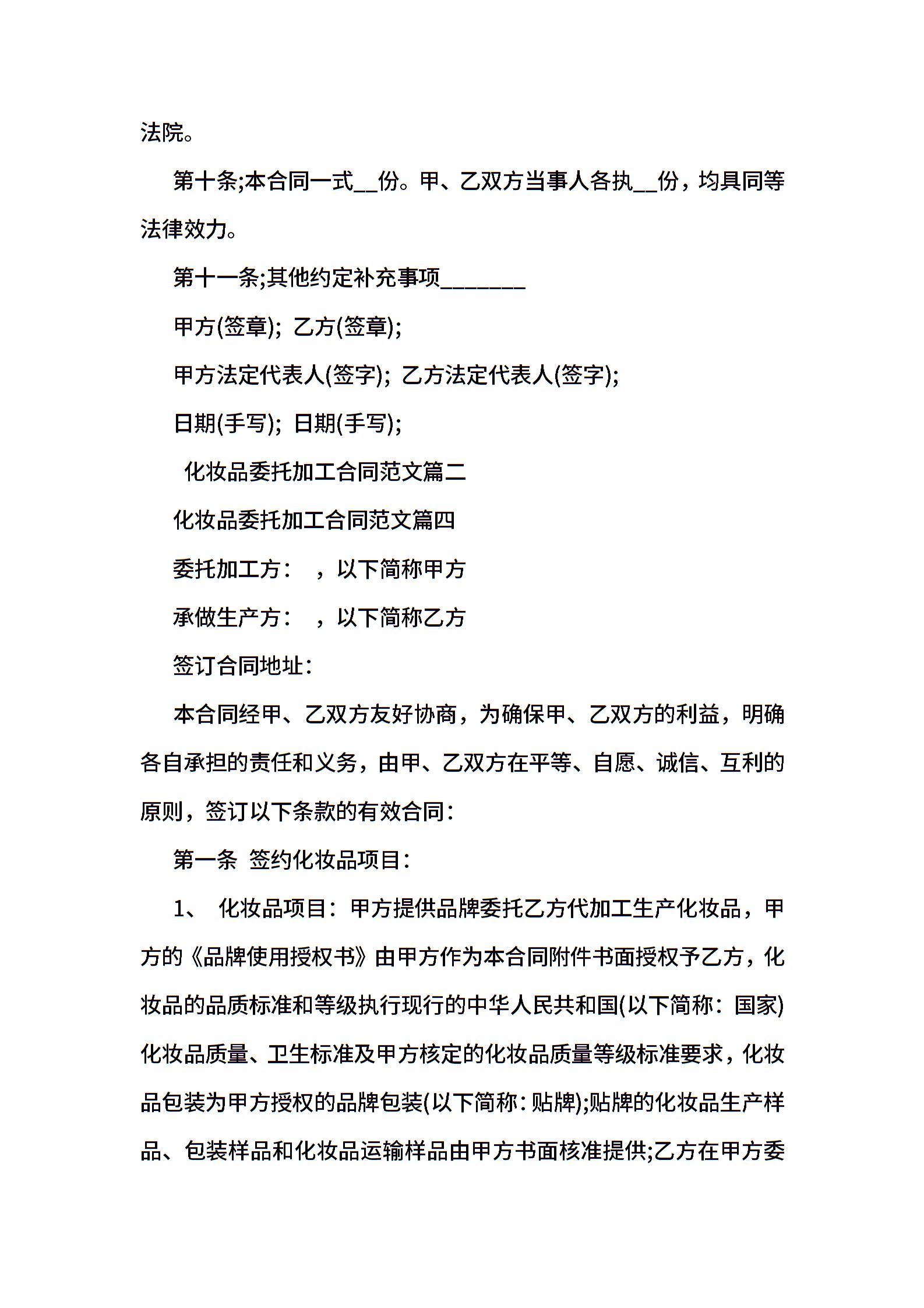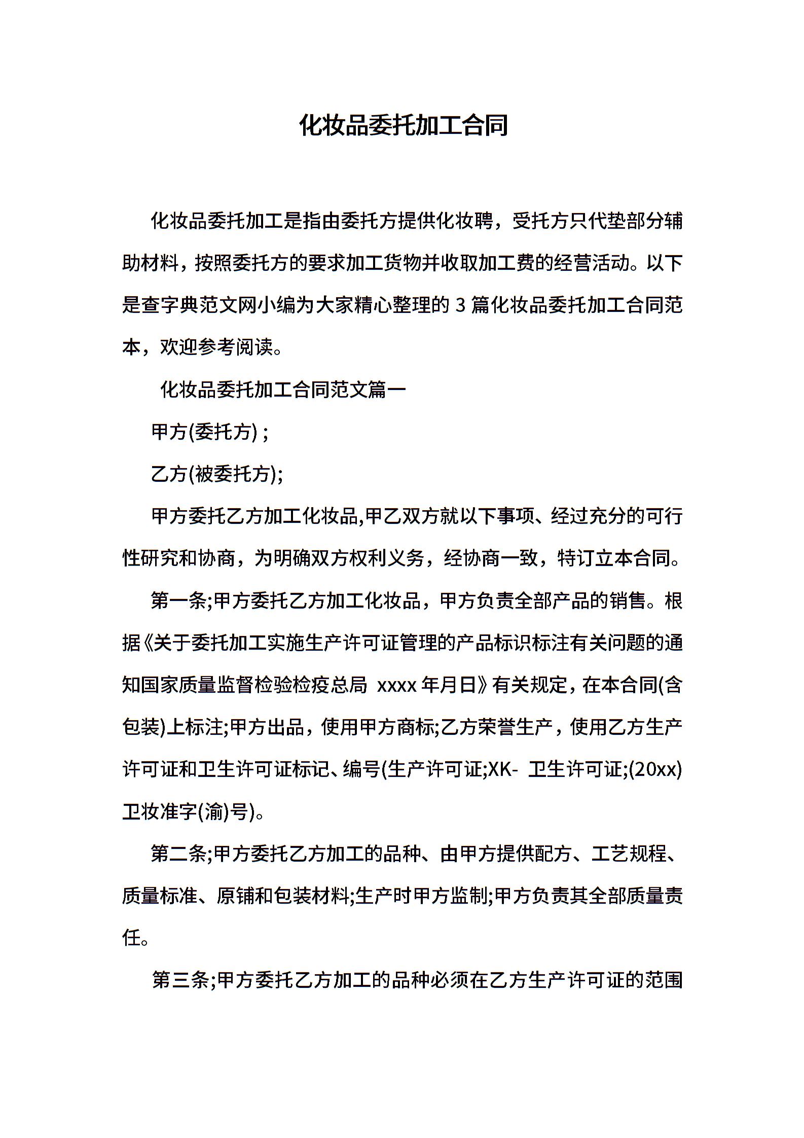 化妆品委托加工合同