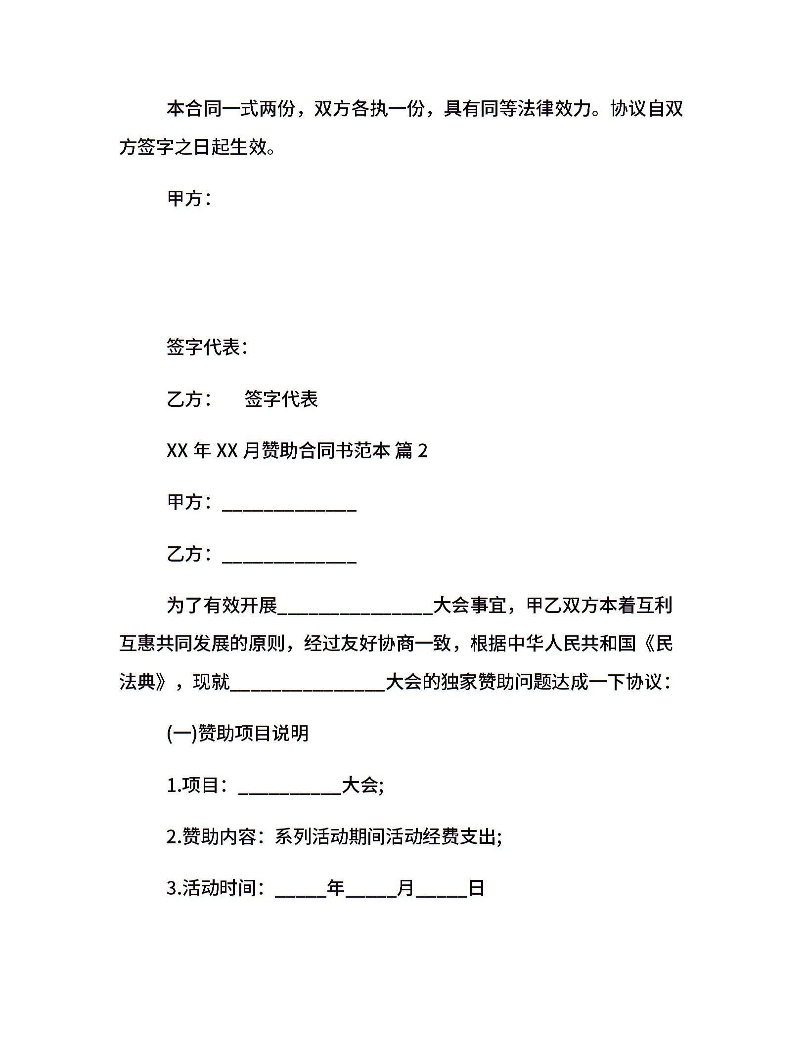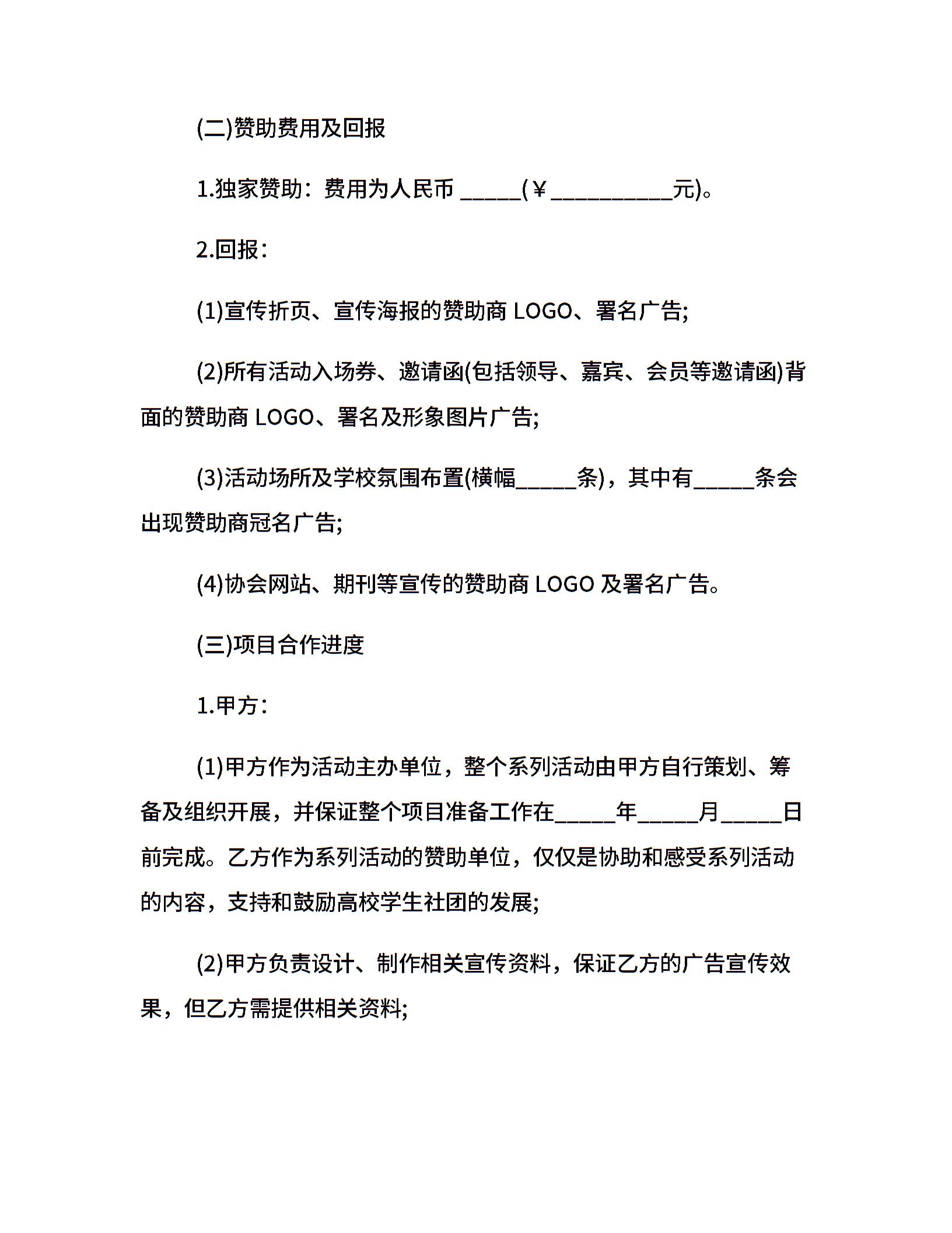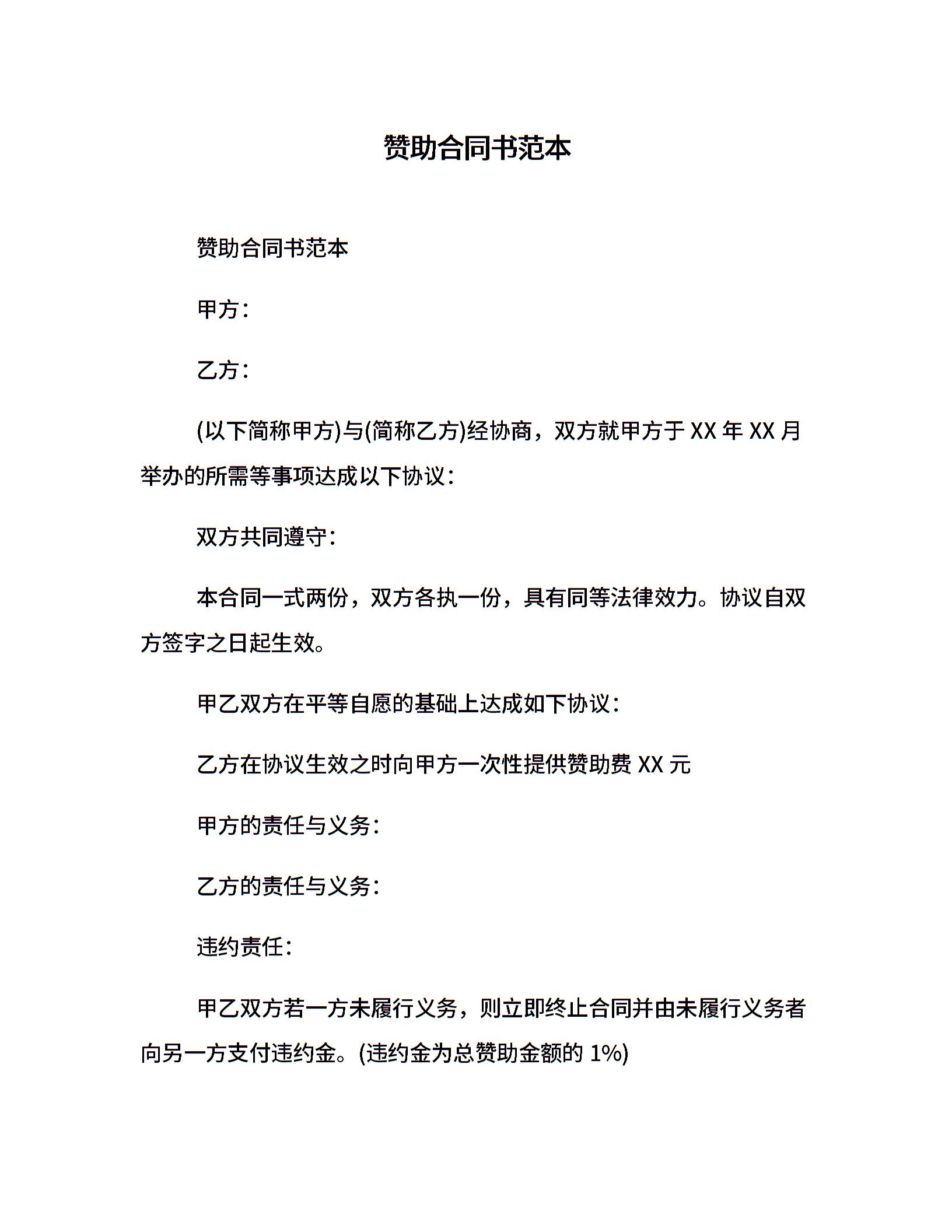 赞助合同书范本