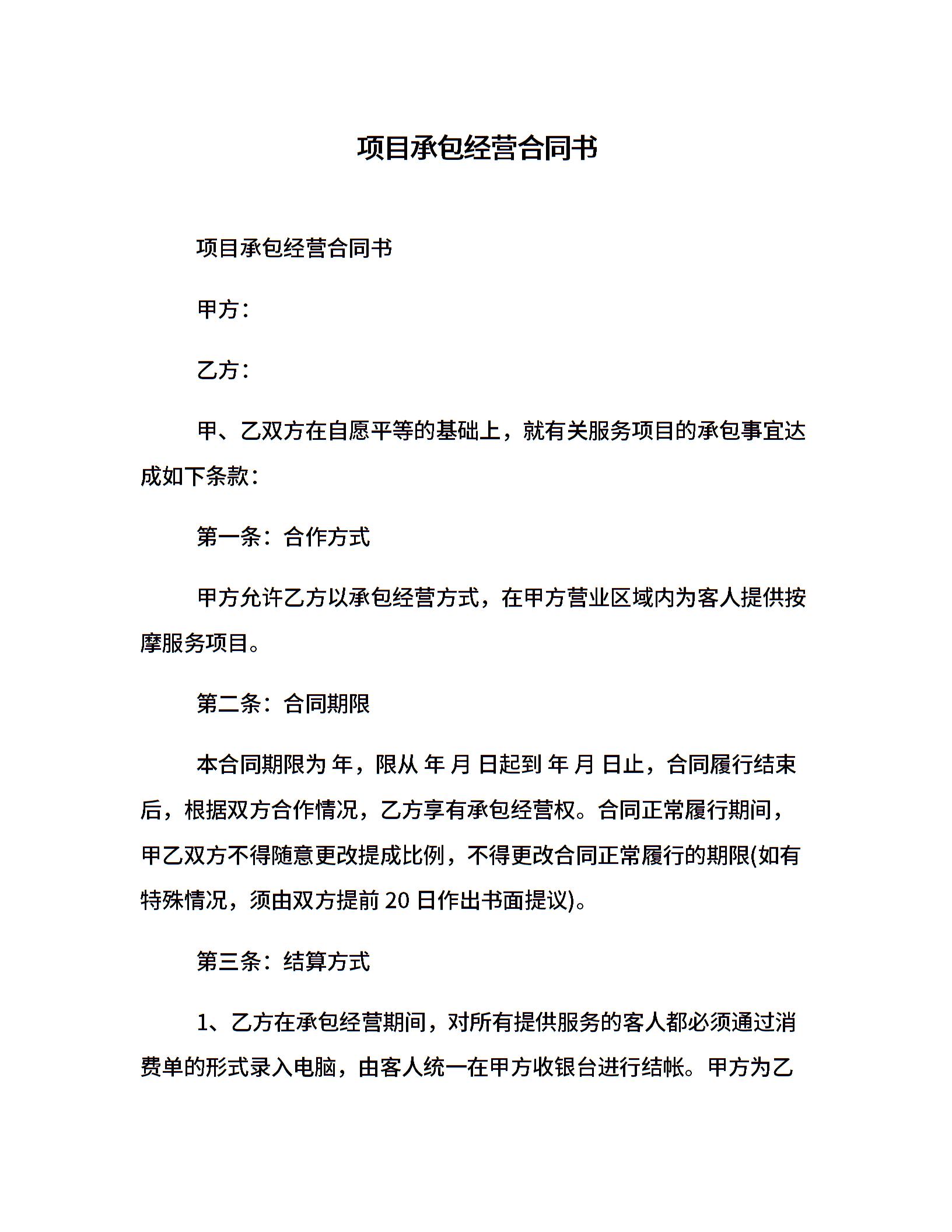 项目承包经营合同书