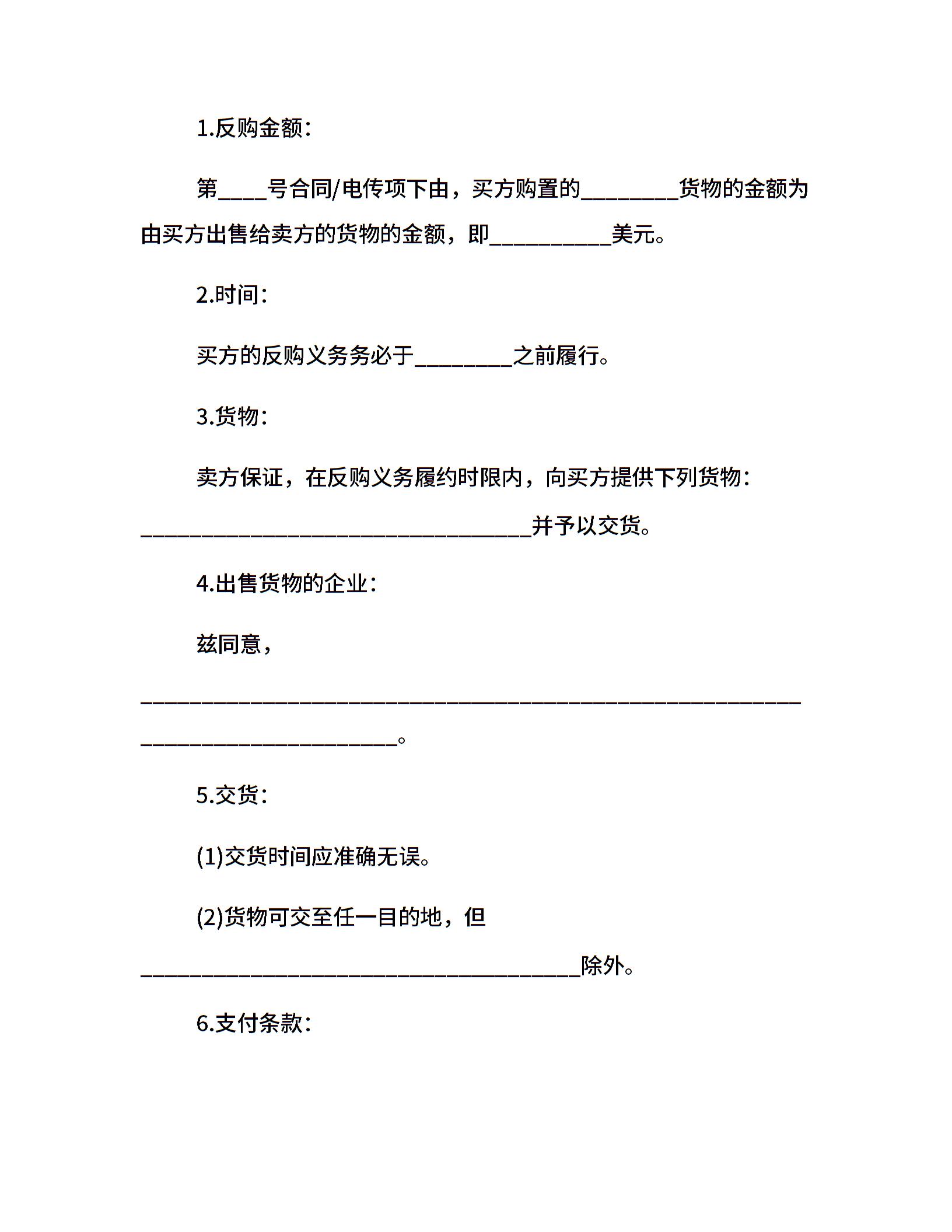 反购贸易合同范本