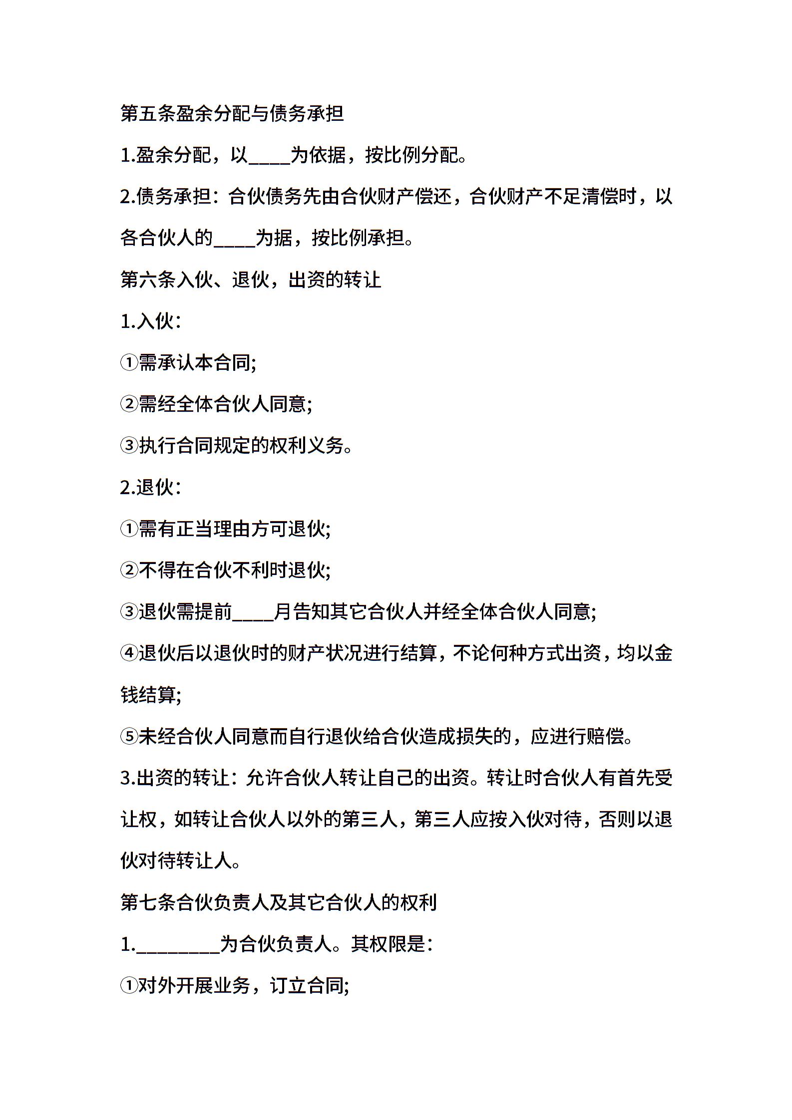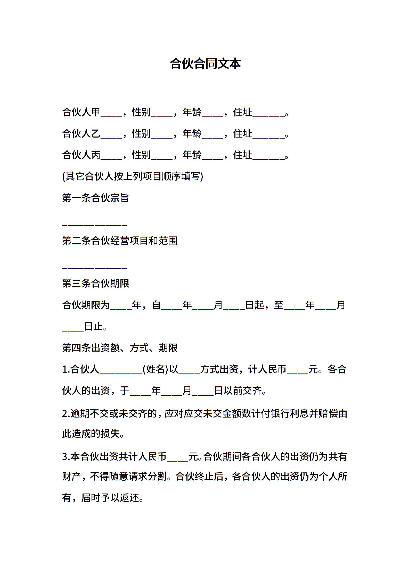 合伙合同文本