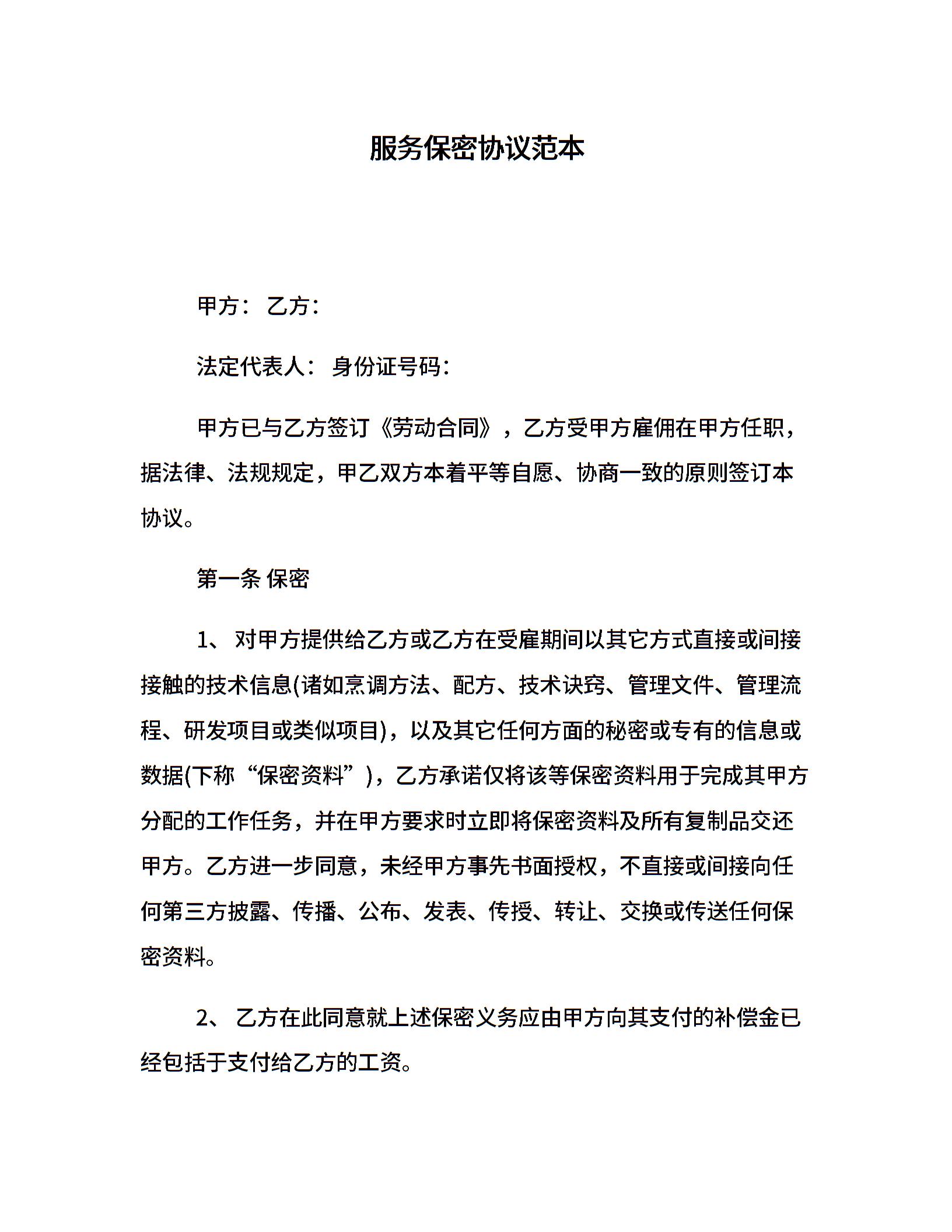 服务保密协议范本