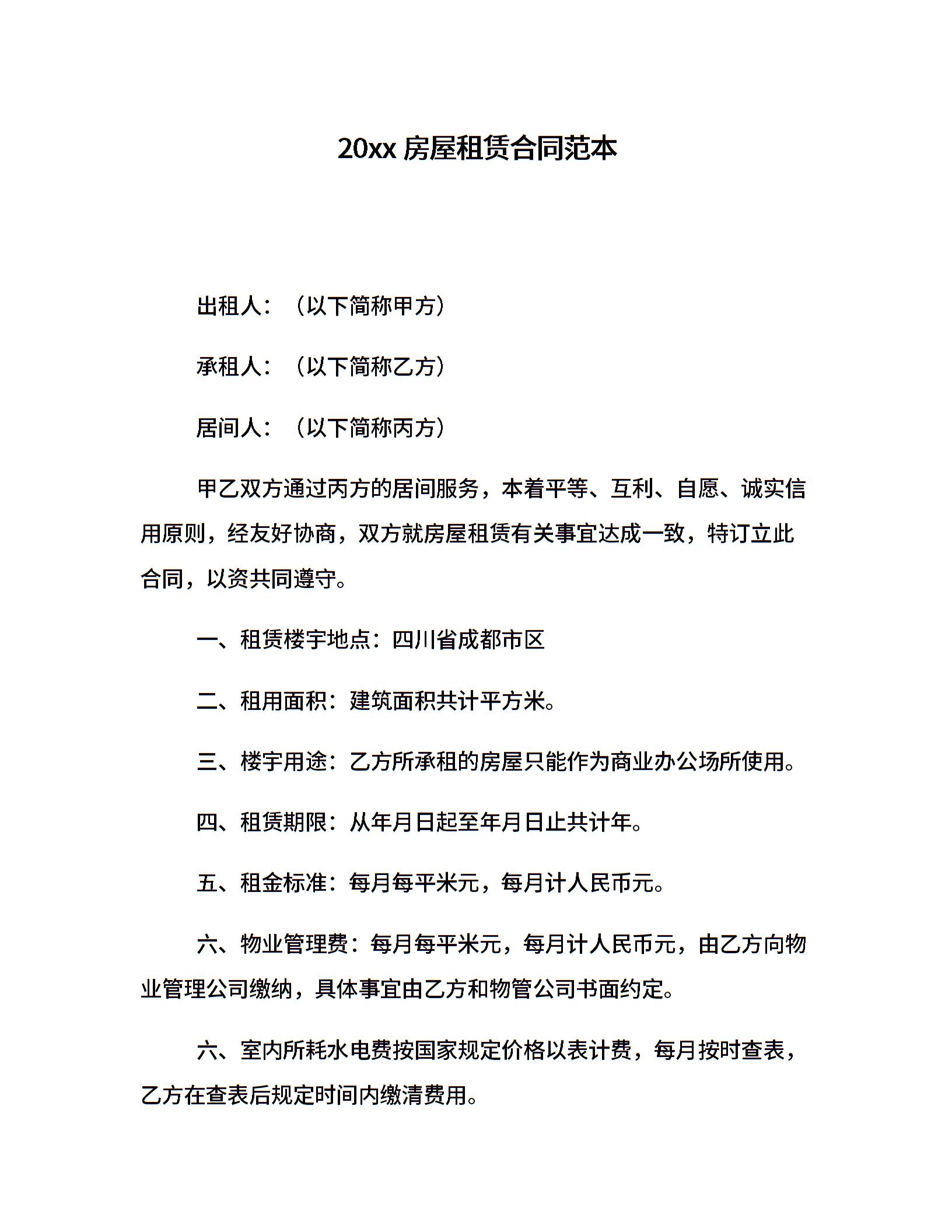 20xx房屋租赁合同范本