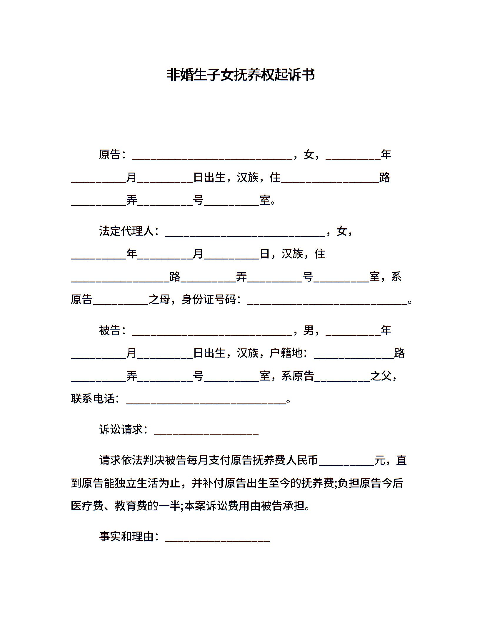 非婚生子女抚养权起诉书