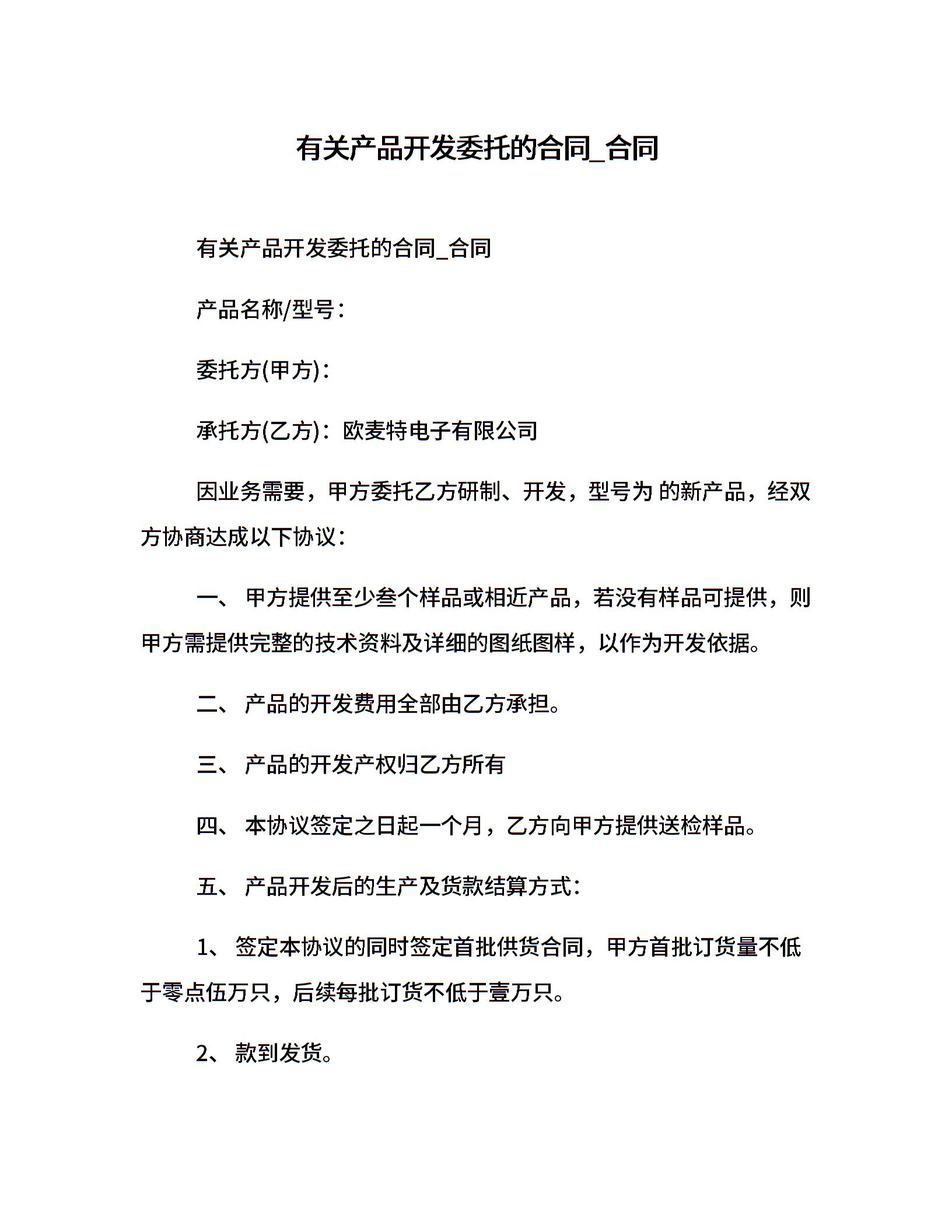 有关产品开发委托的合同_合同