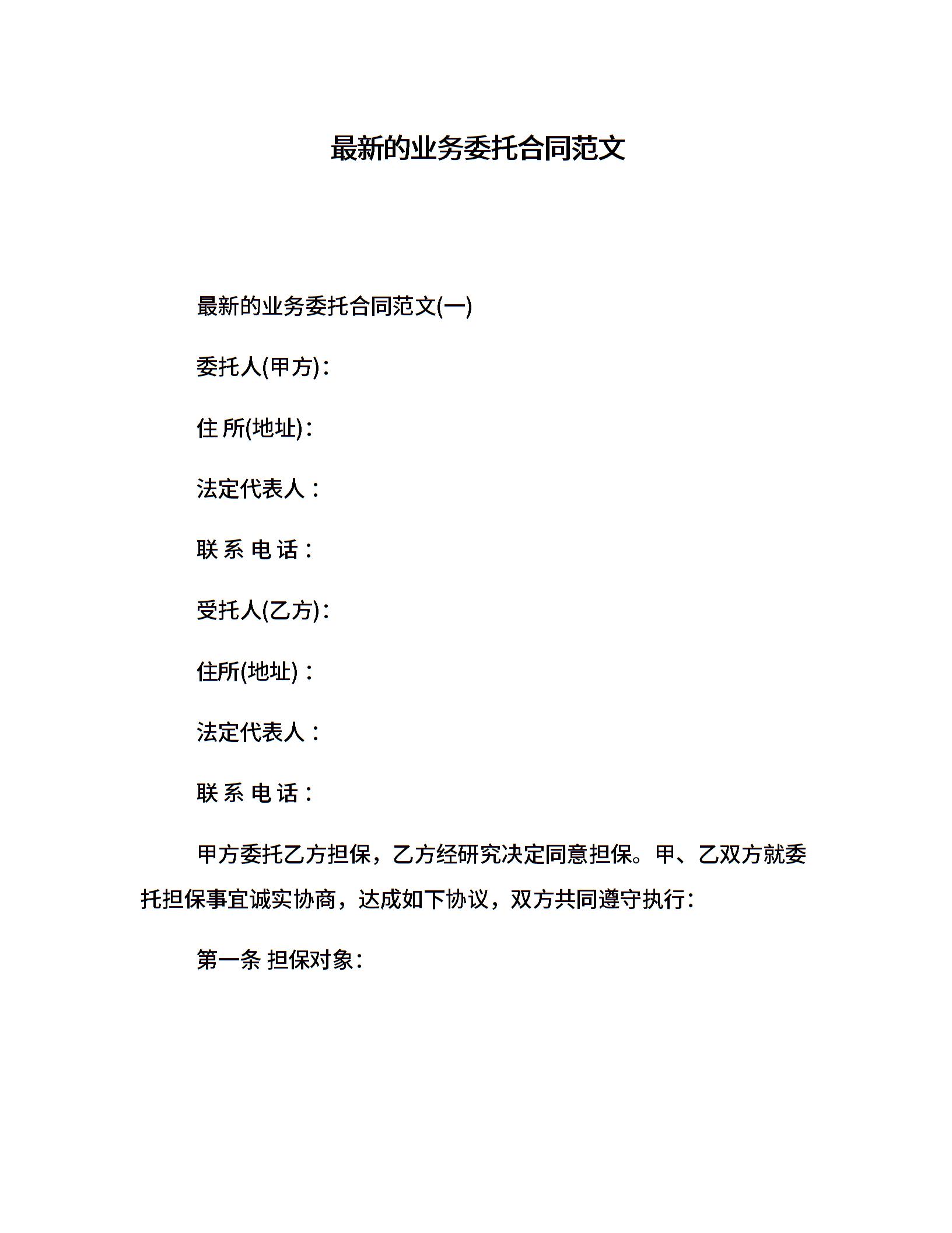 最新的业务委托合同范文