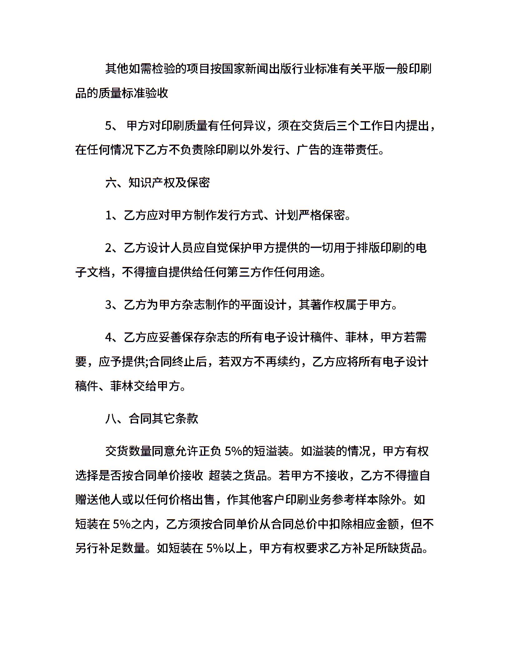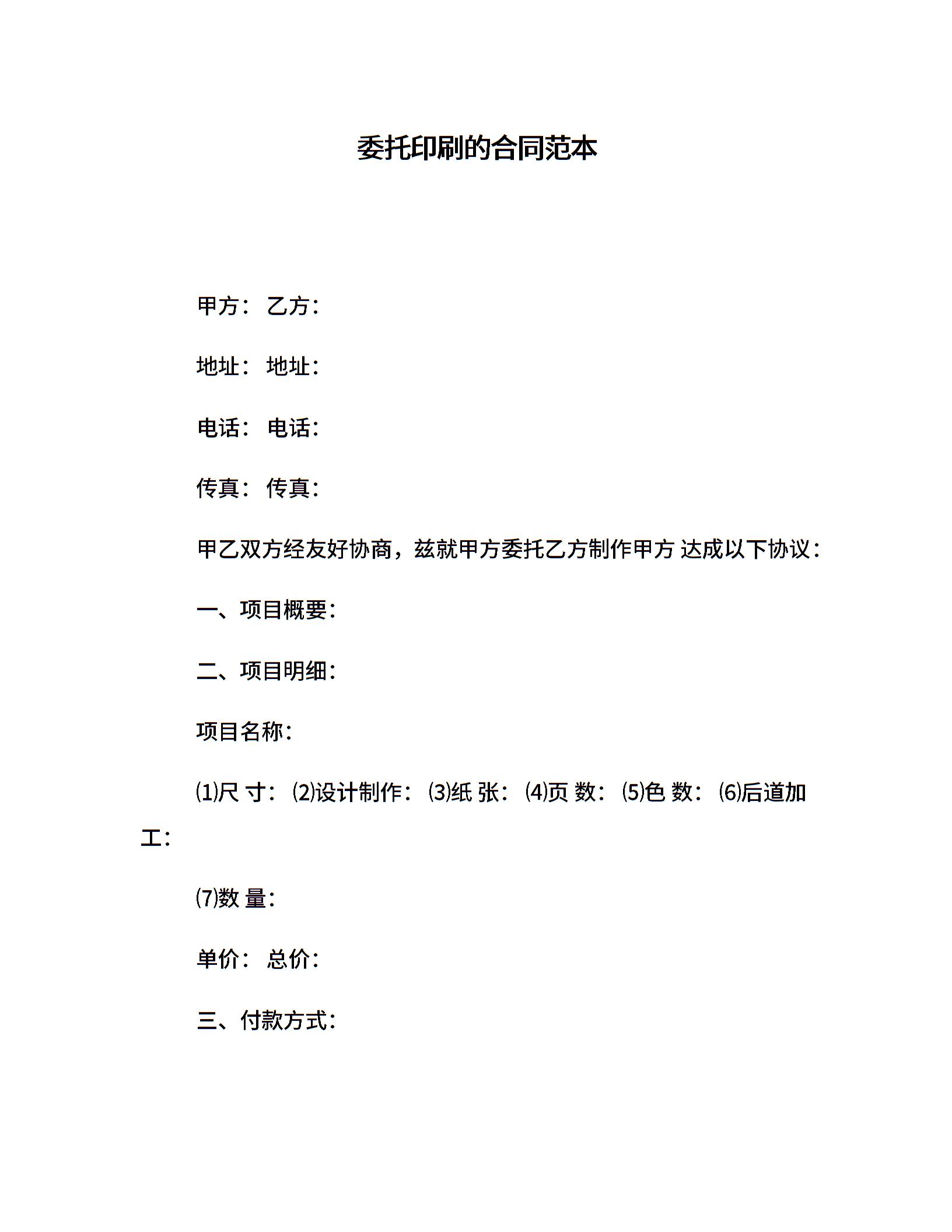委托印刷的合同范本
