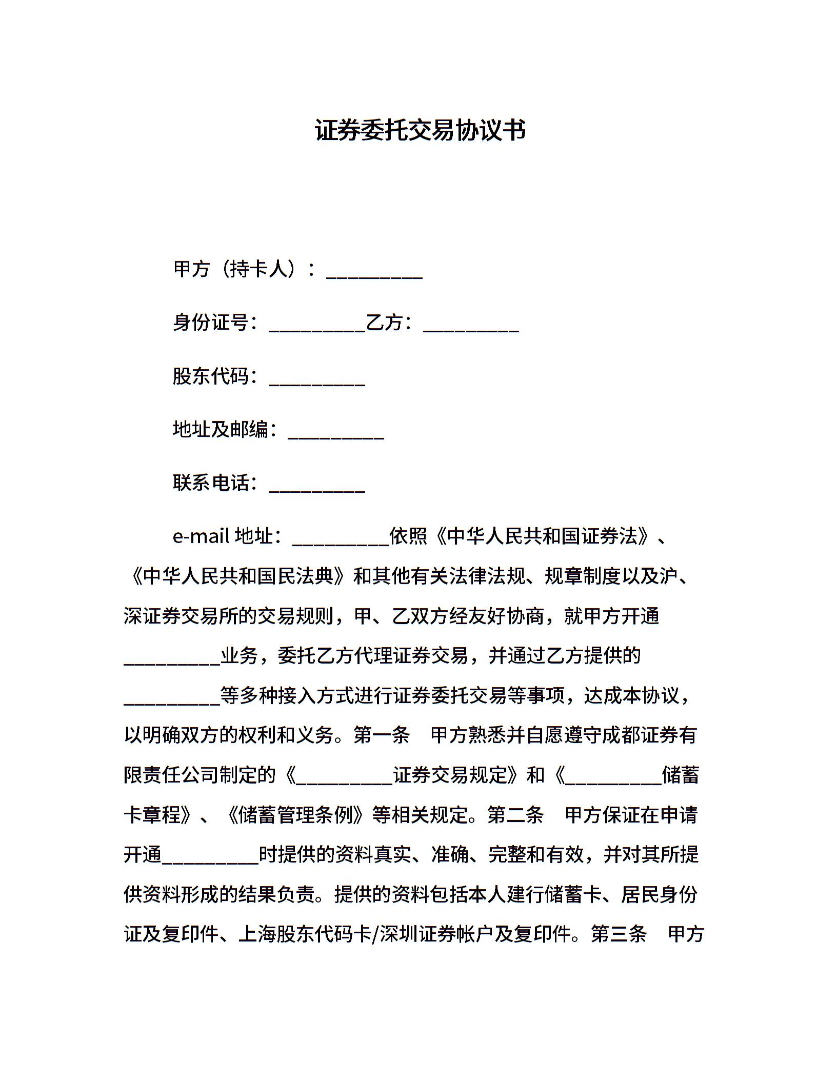 证券委托交易协议书