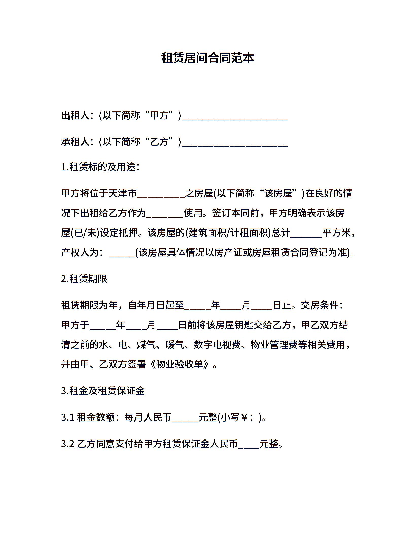 租赁居间合同范本