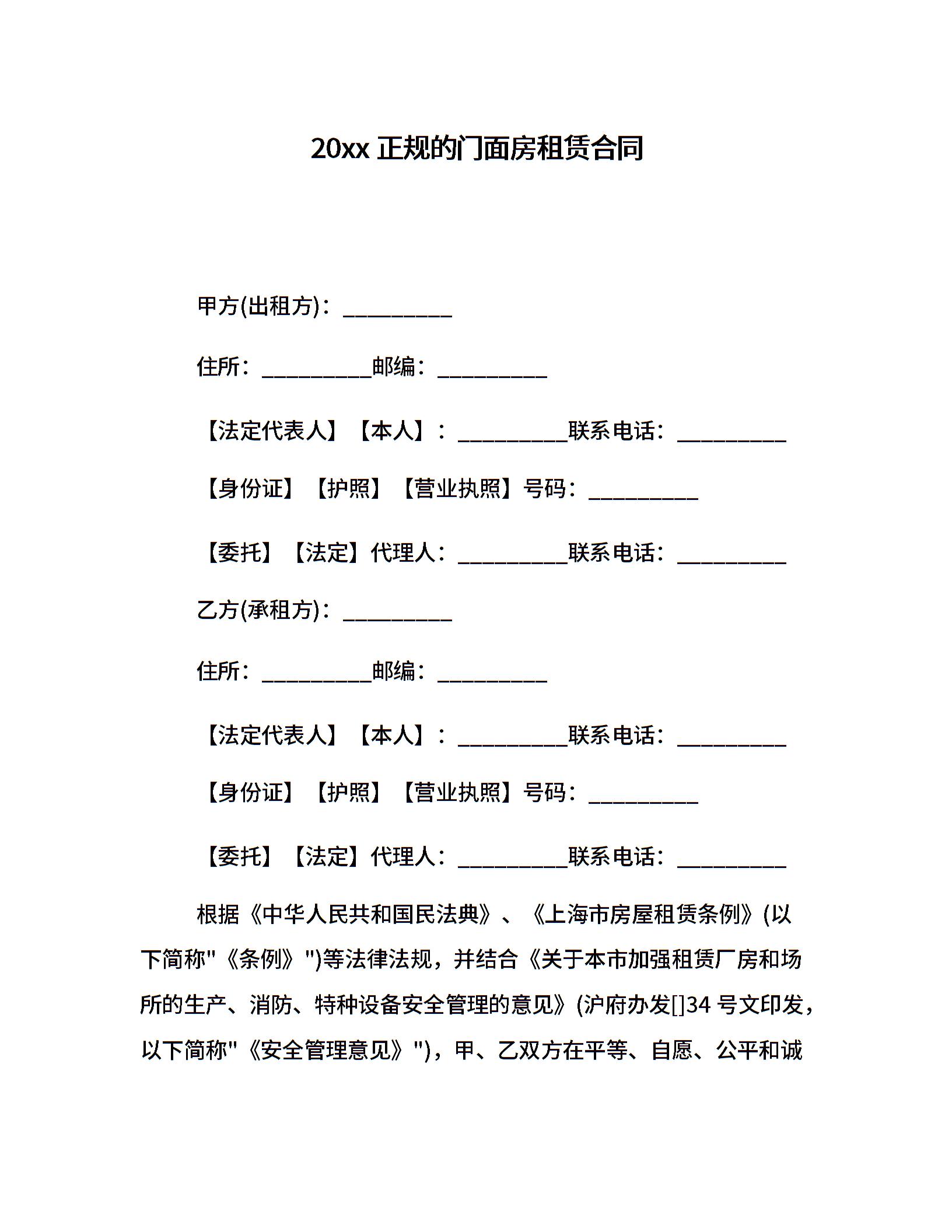 20xx正规的门面房租赁合同