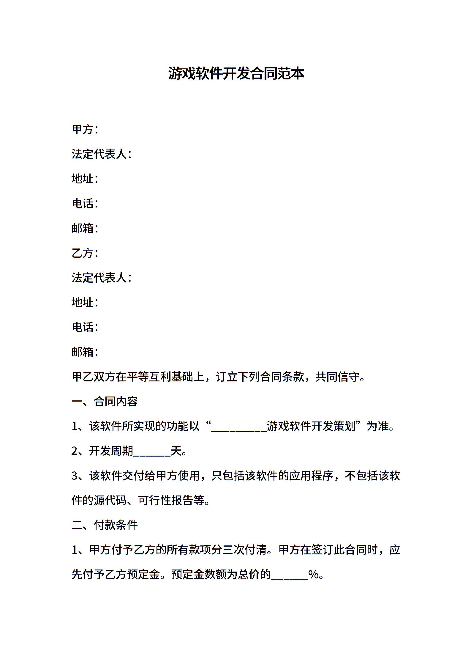 游戏软件开发合同范本