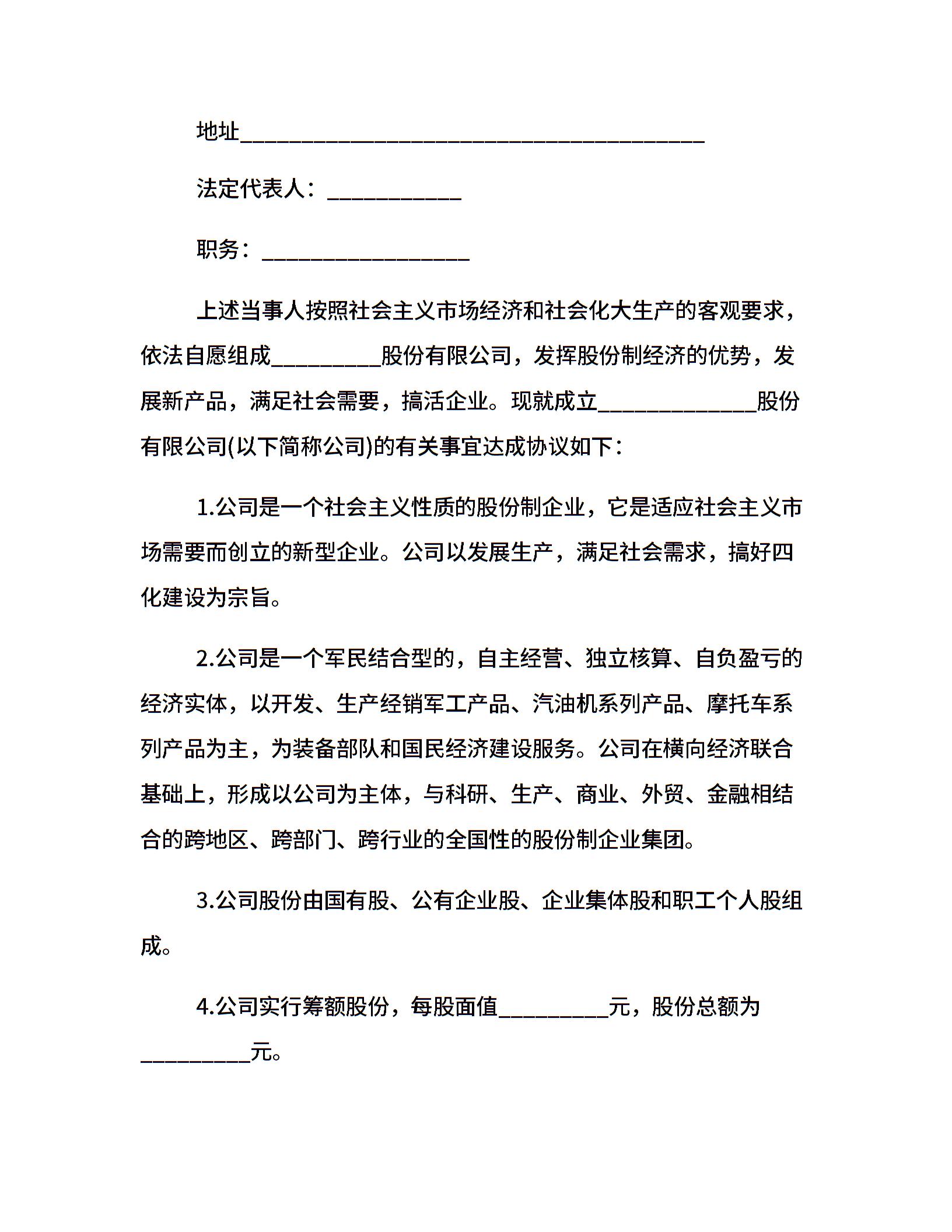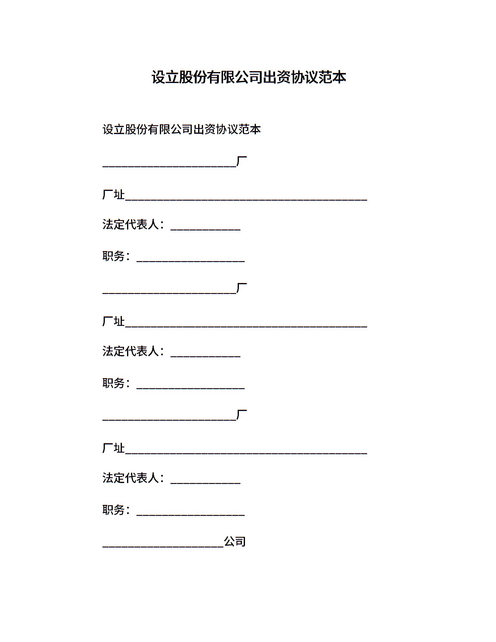 设立股份有限公司出资协议范本