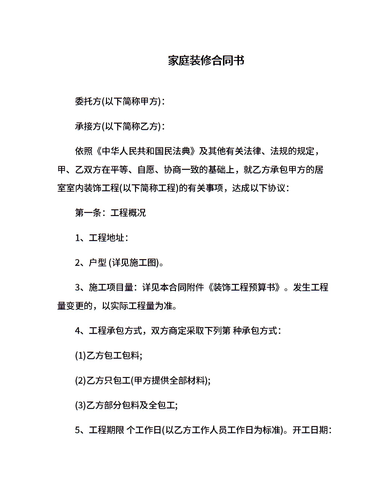 家庭装修合同书