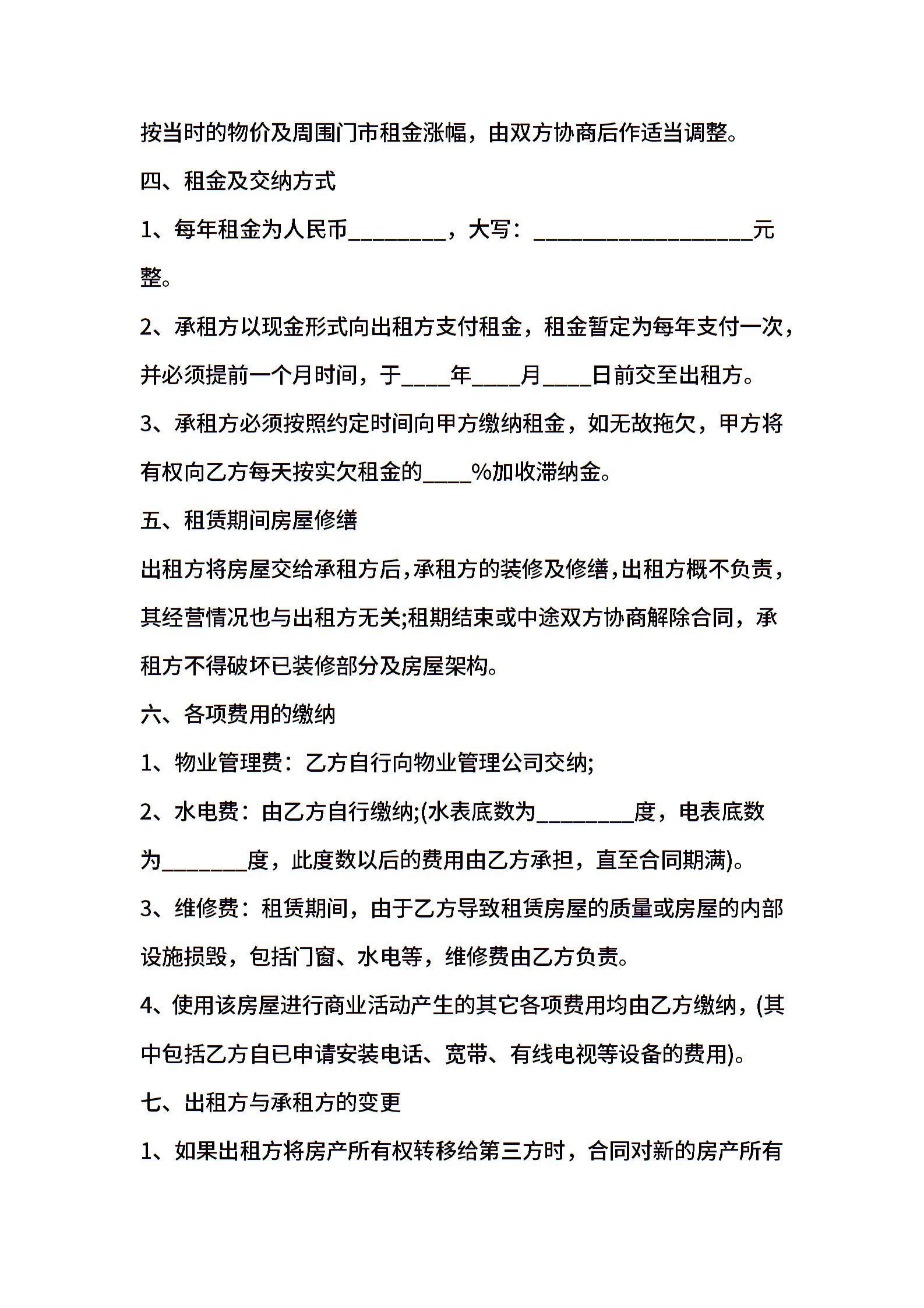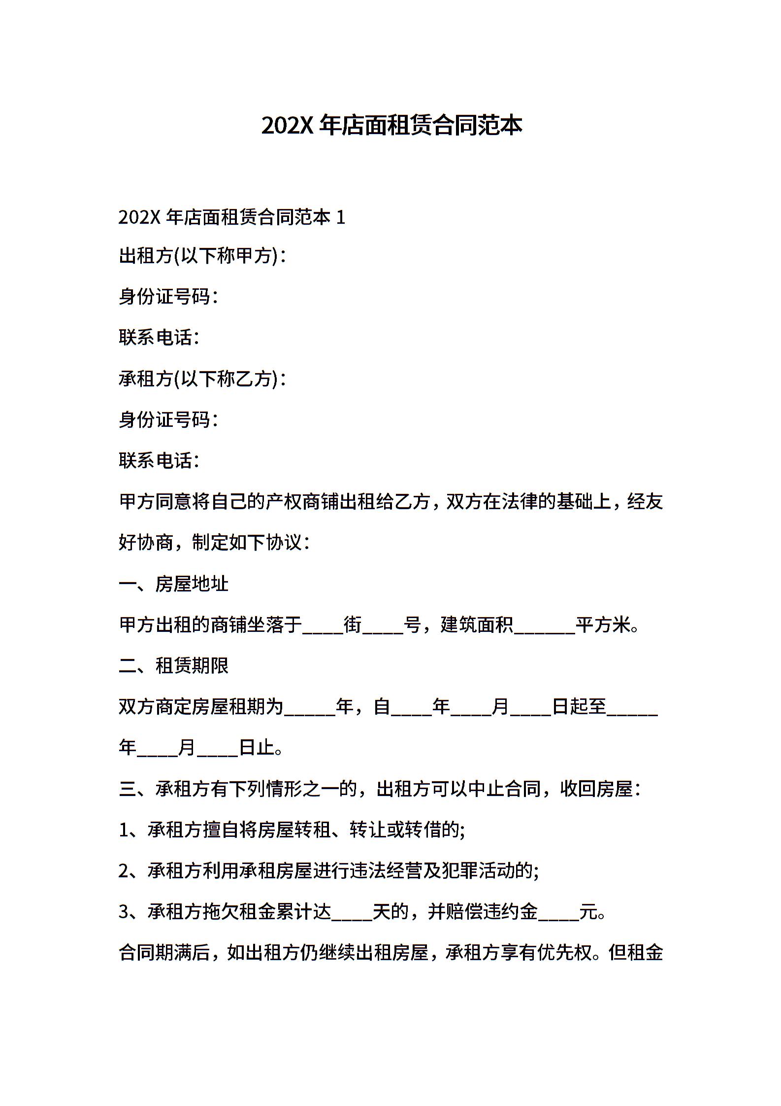 202X年店面租赁合同范本