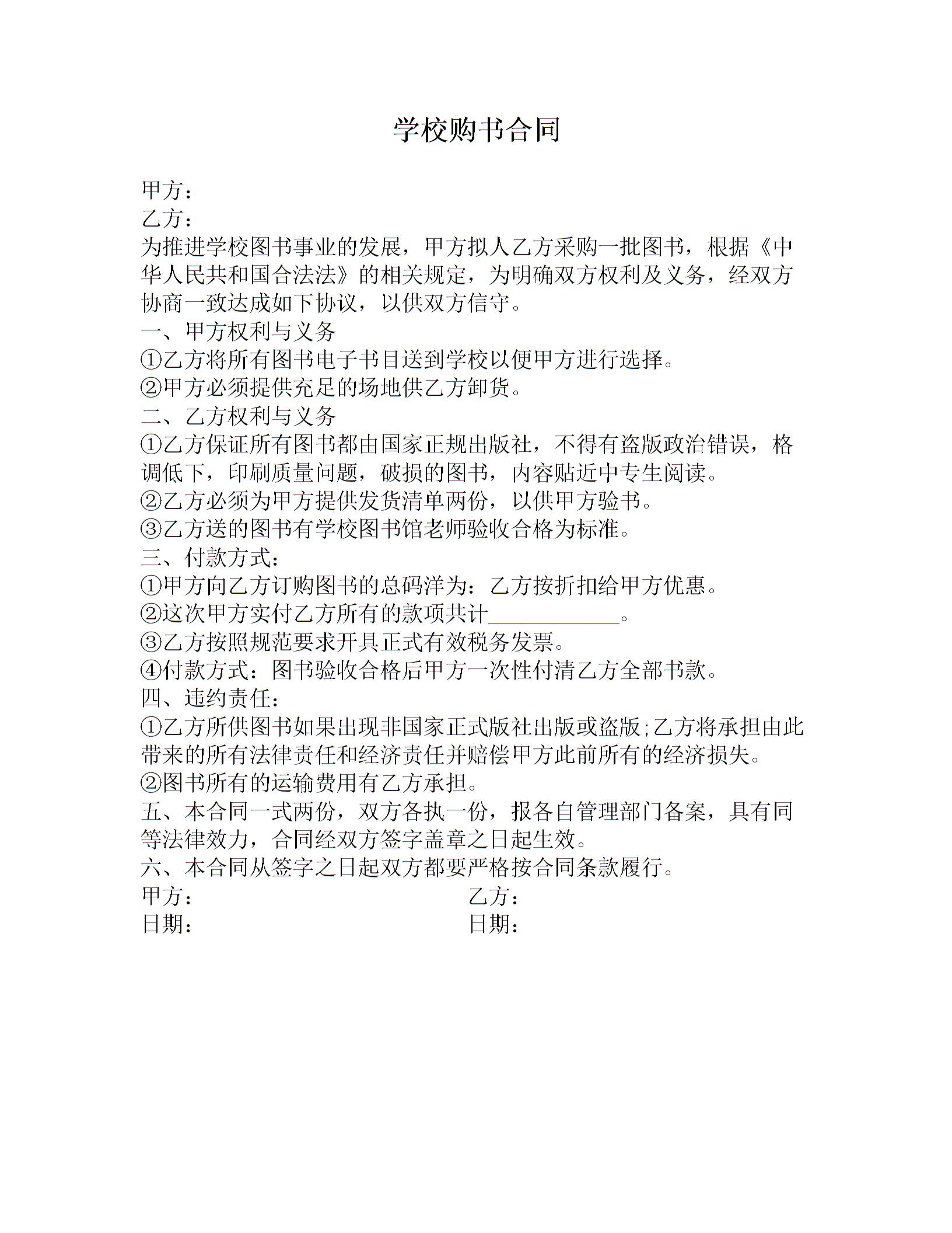 学校购书合同