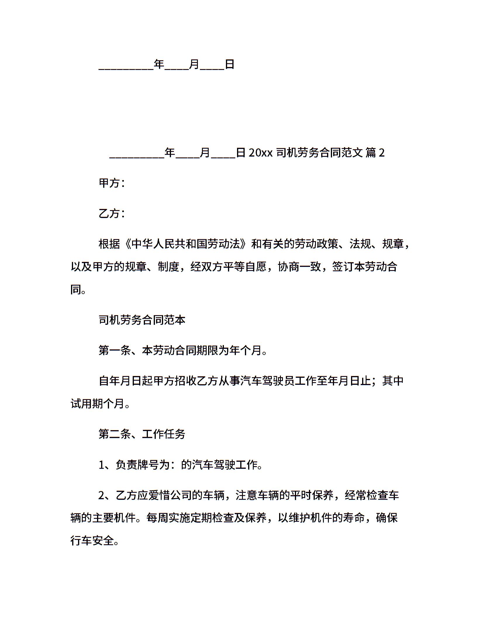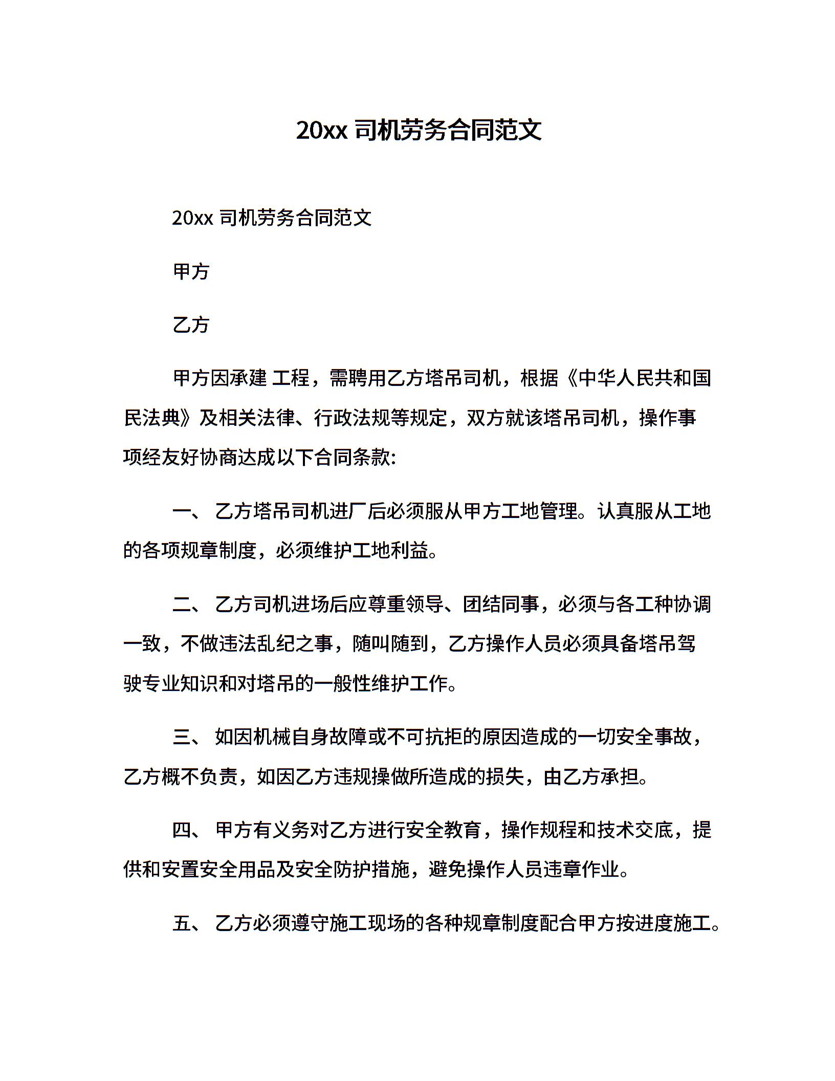 20xx司机劳务合同范文