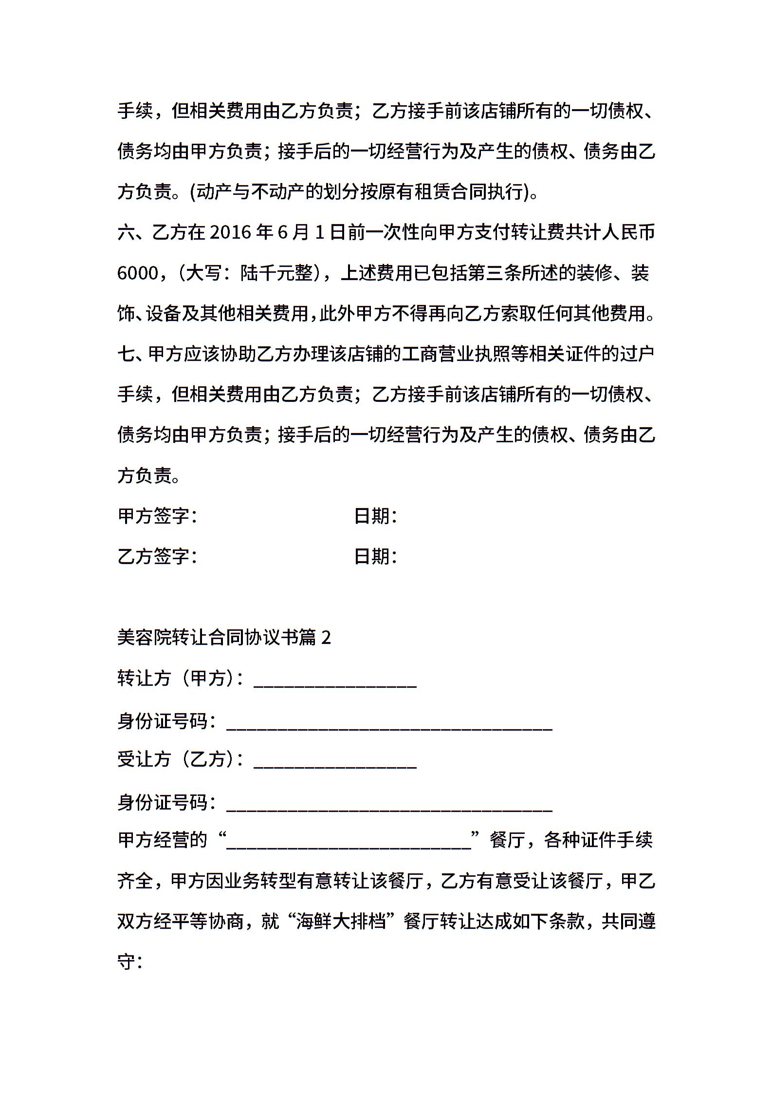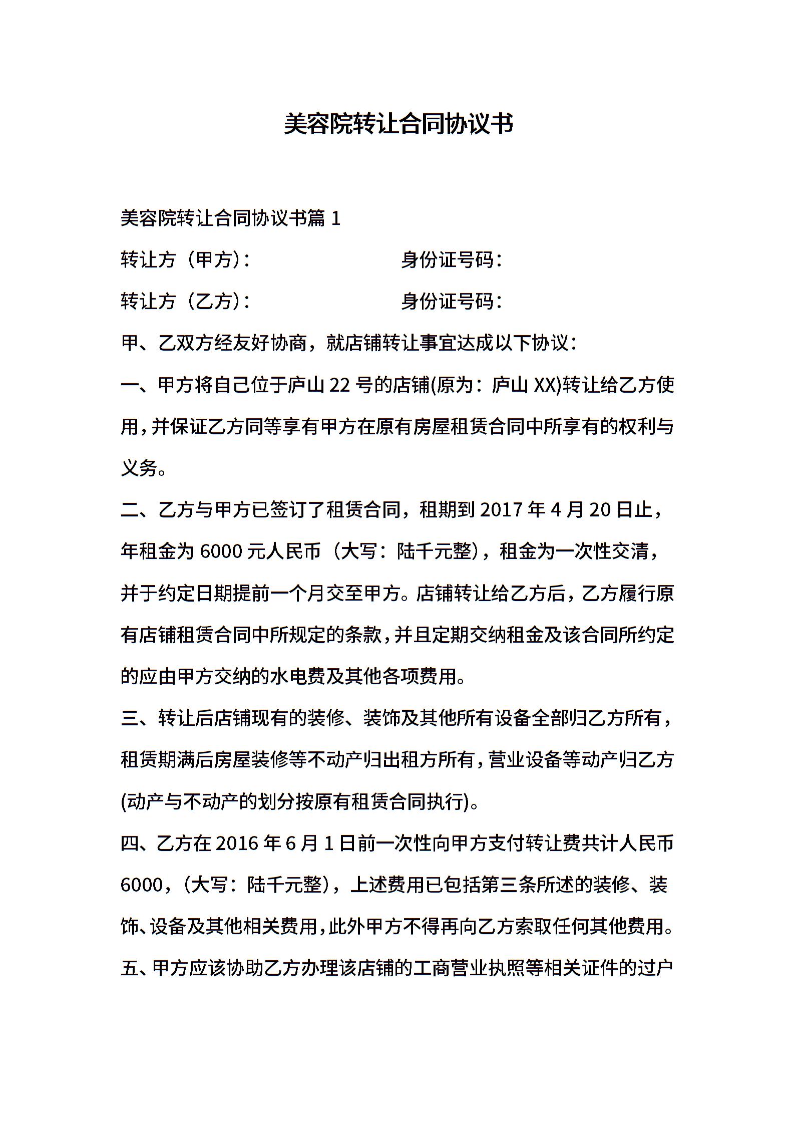 美容院转让合同协议书