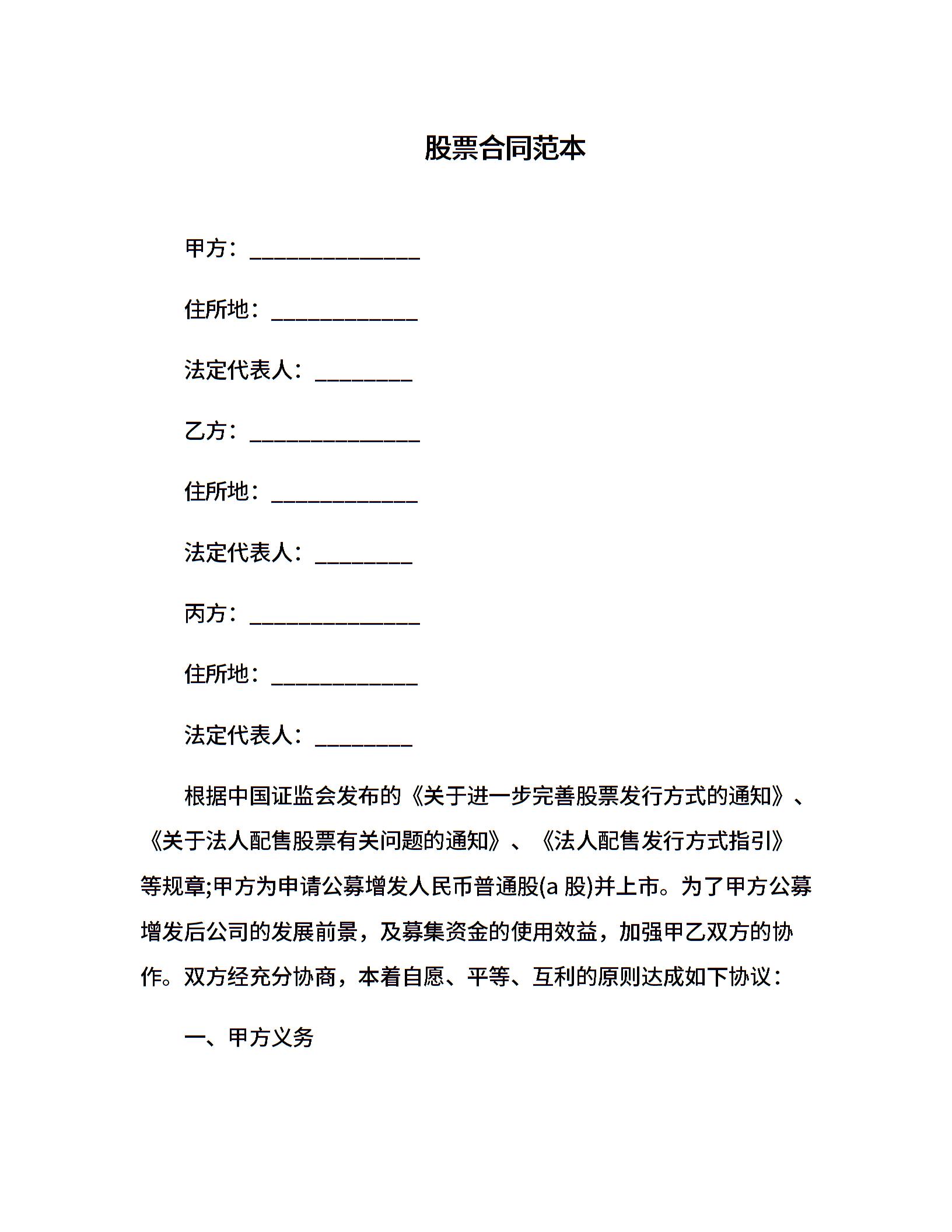 股票合同范本