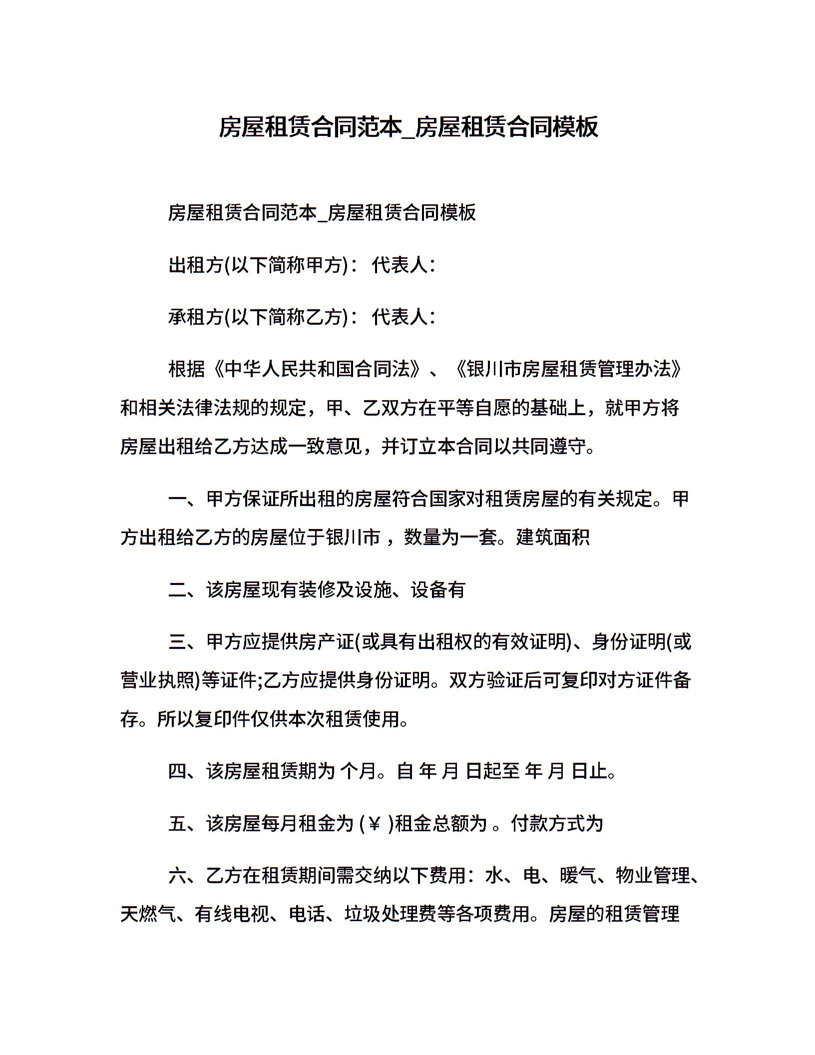 房屋租赁合同范本_房屋租赁合同模板