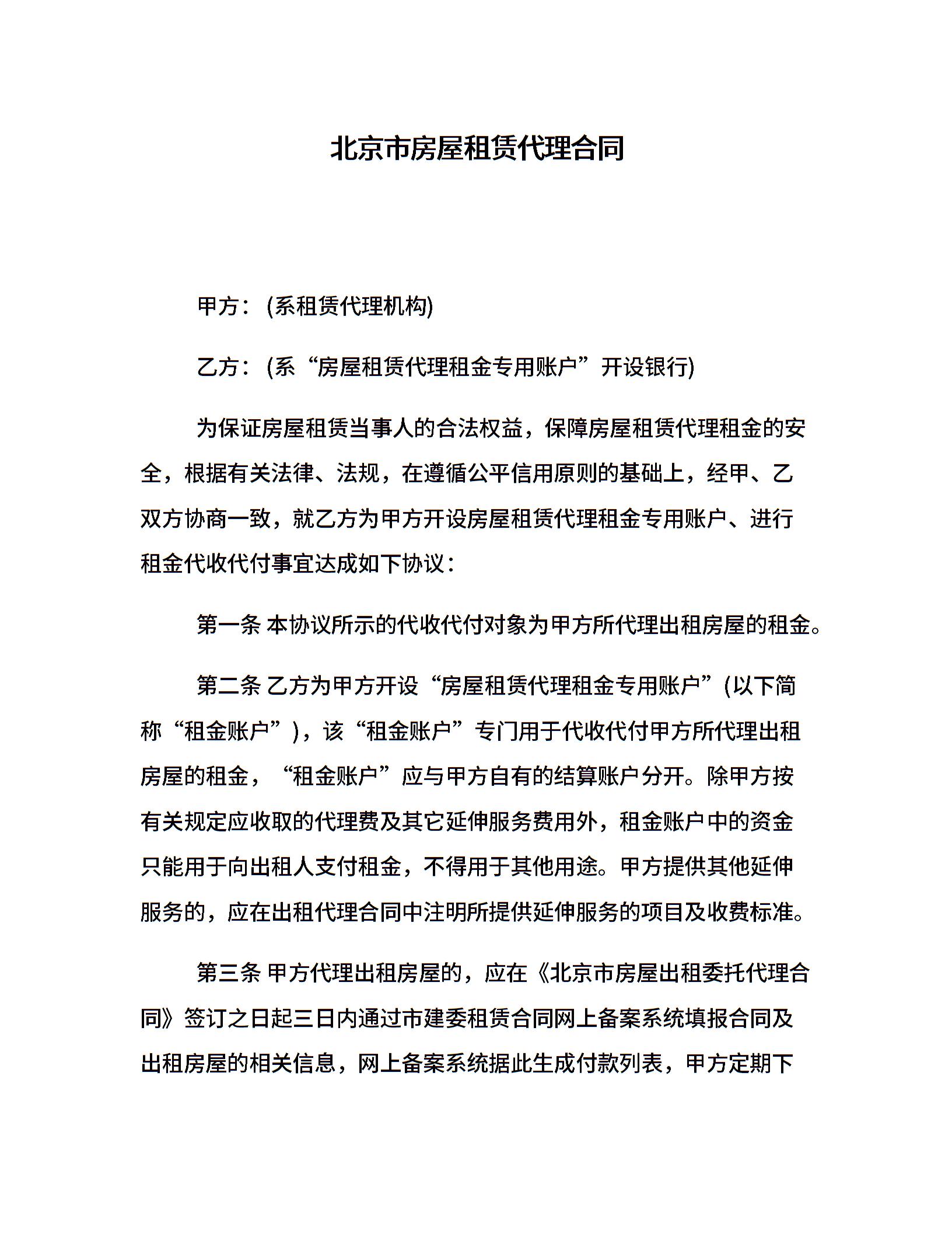 北京市房屋租赁代理合同