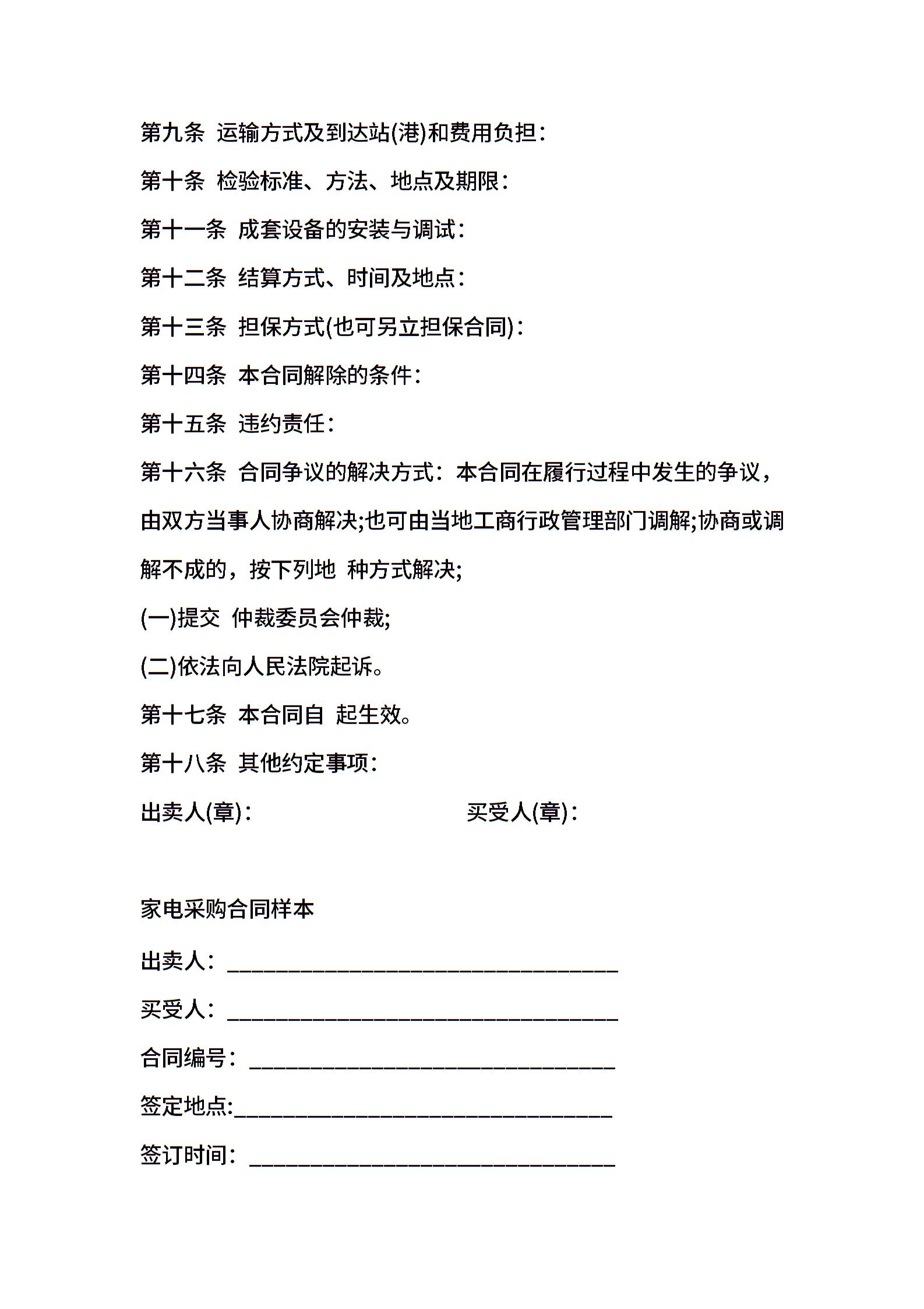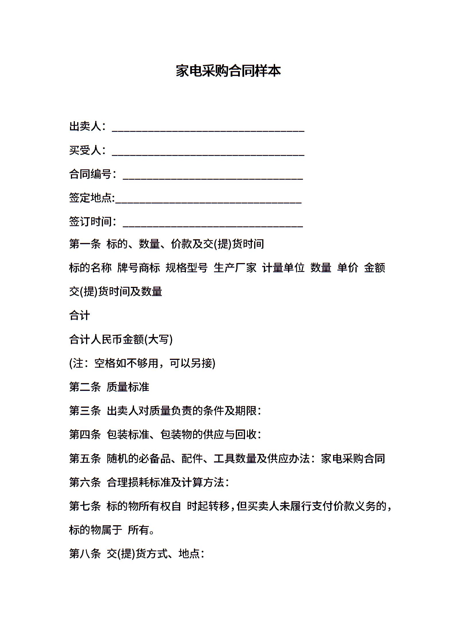 新家电采购合同样本