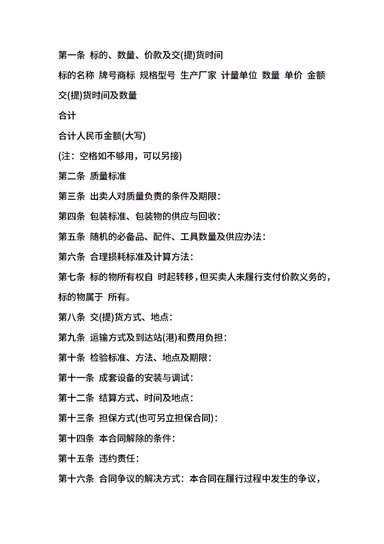 • 分类 购销合同