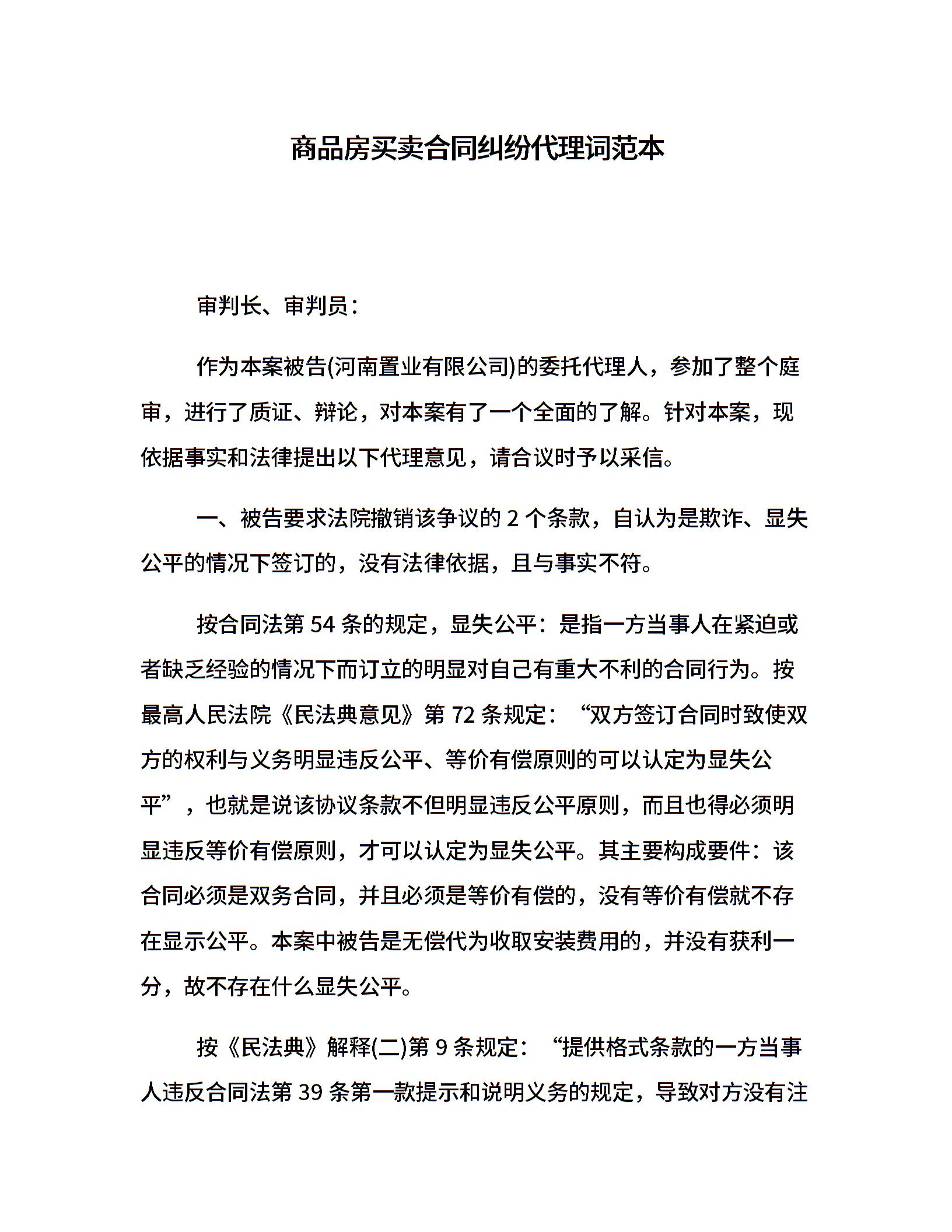 商品房买卖合同纠纷代理词范本