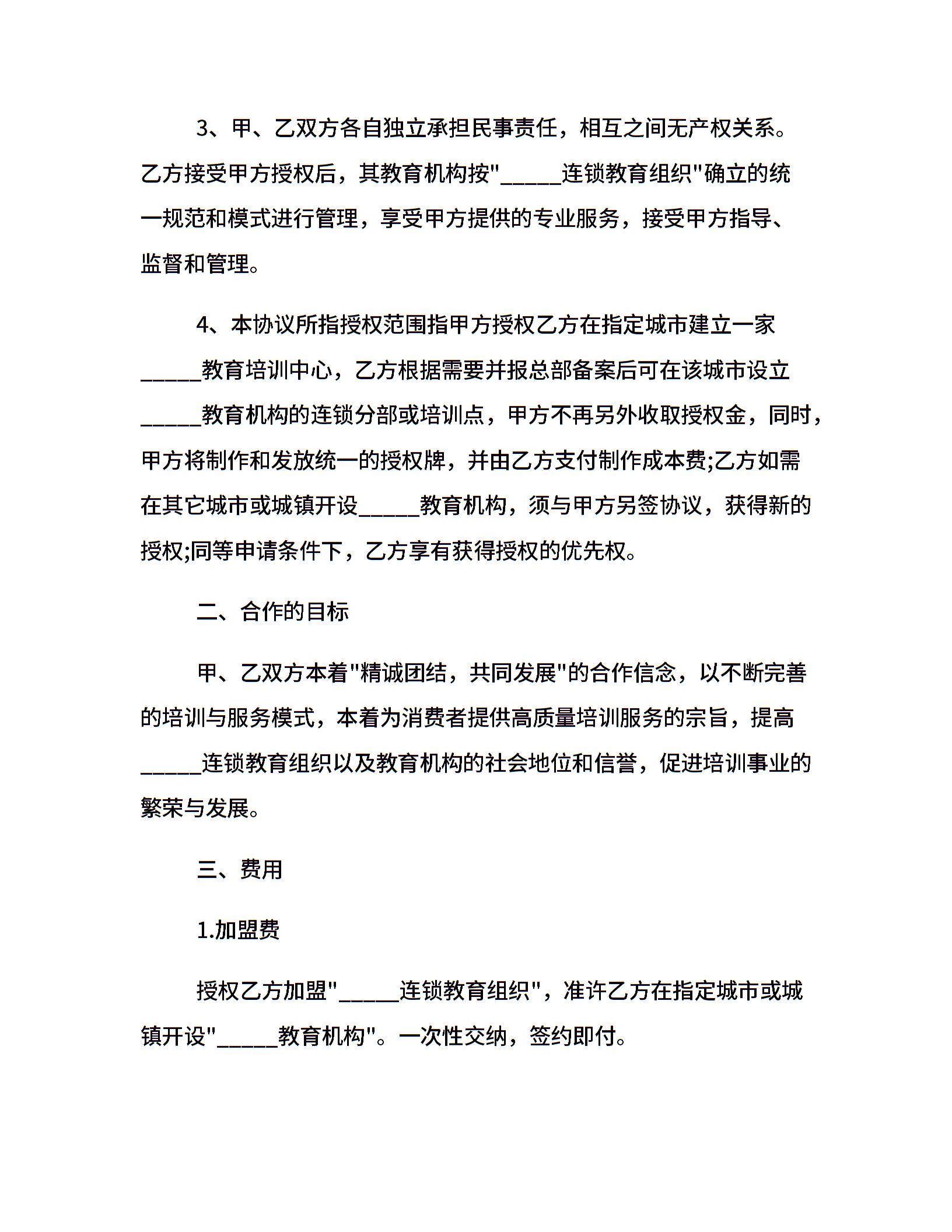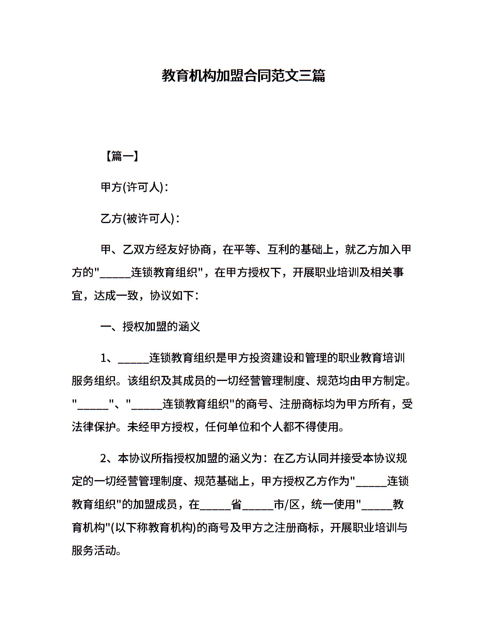 教育机构加盟合同范文三篇