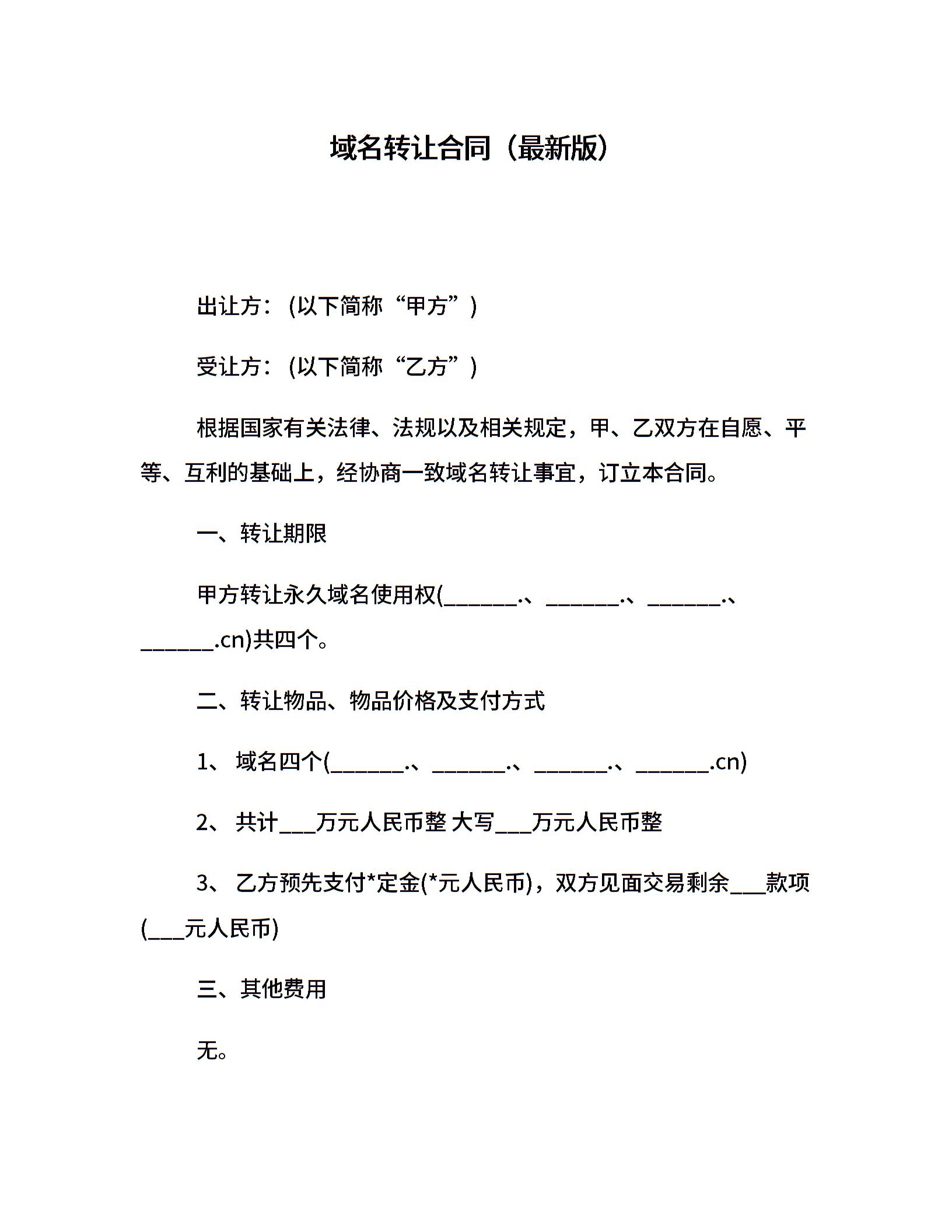 域名转让合同(最新版)