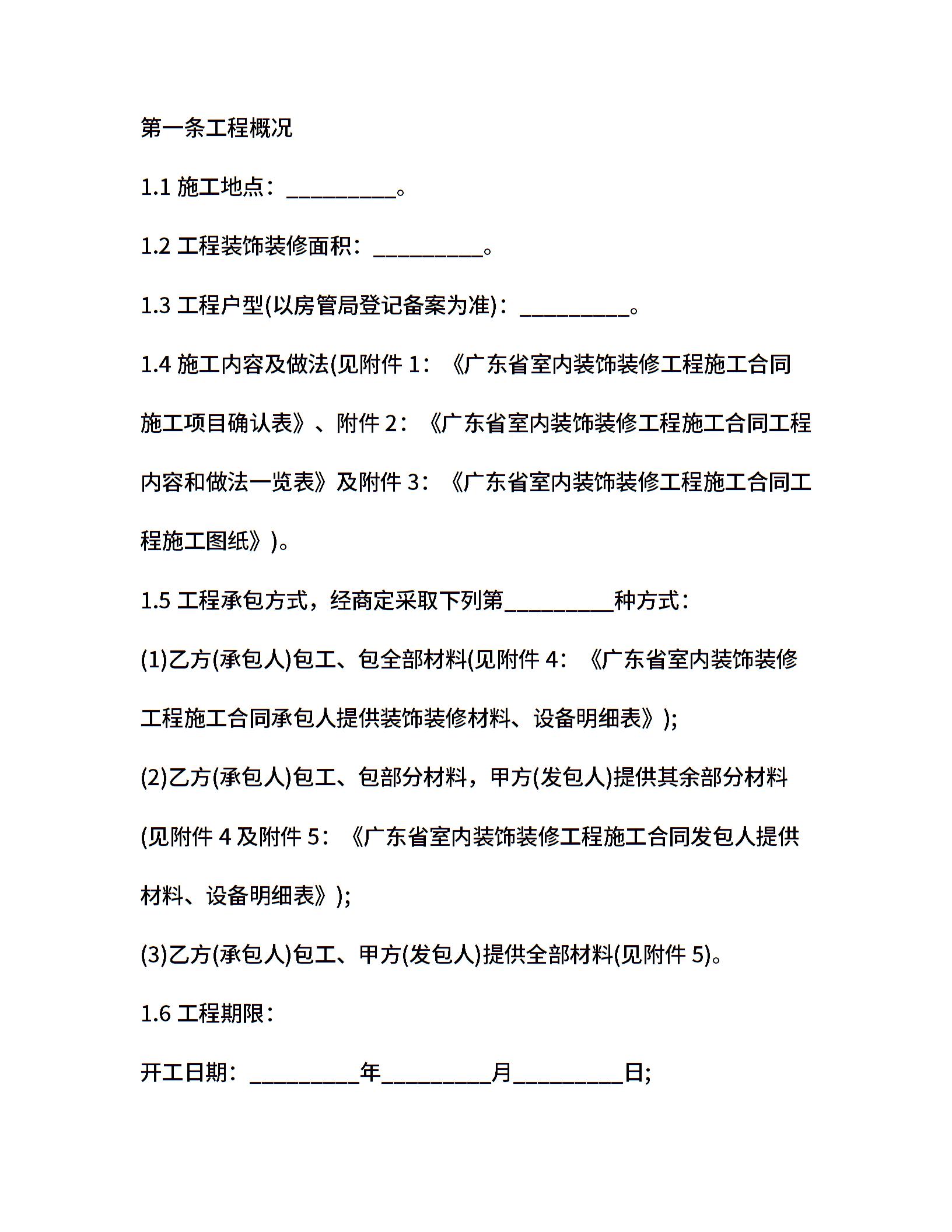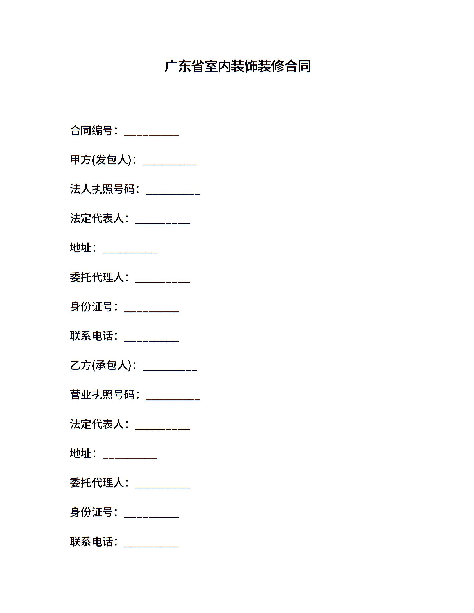 广东省室内装饰装修合同