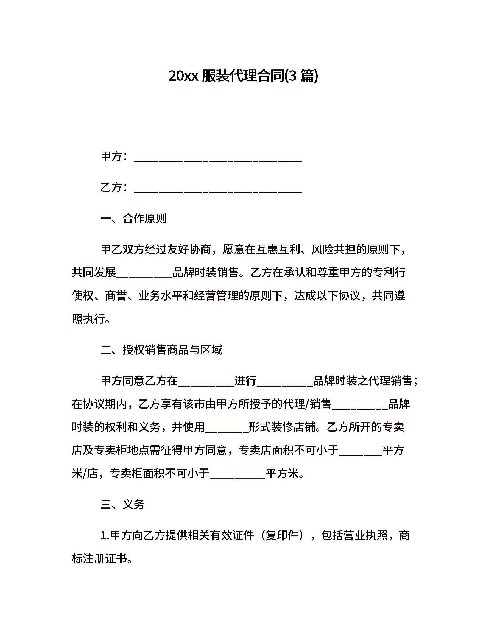 20xx服装代理合同(3篇)