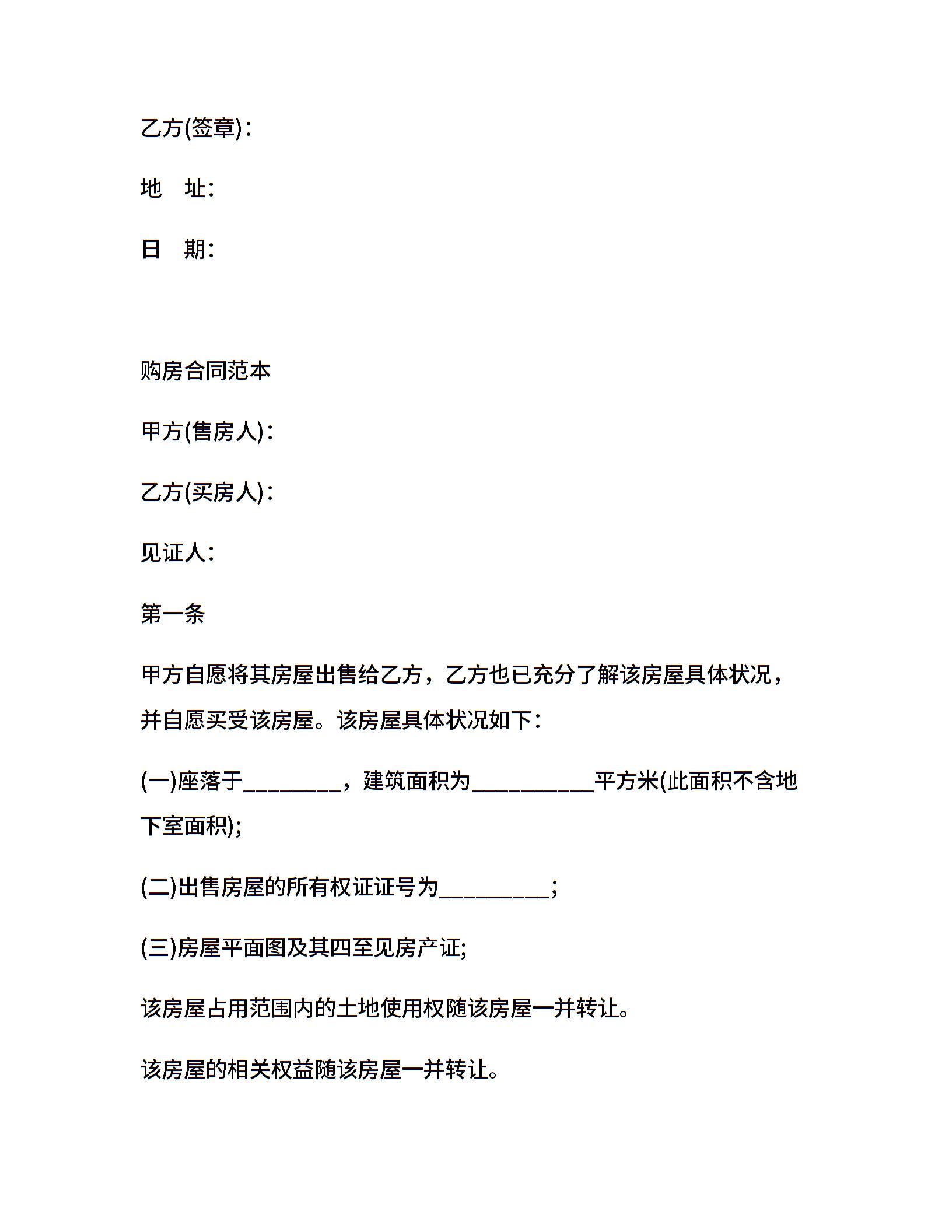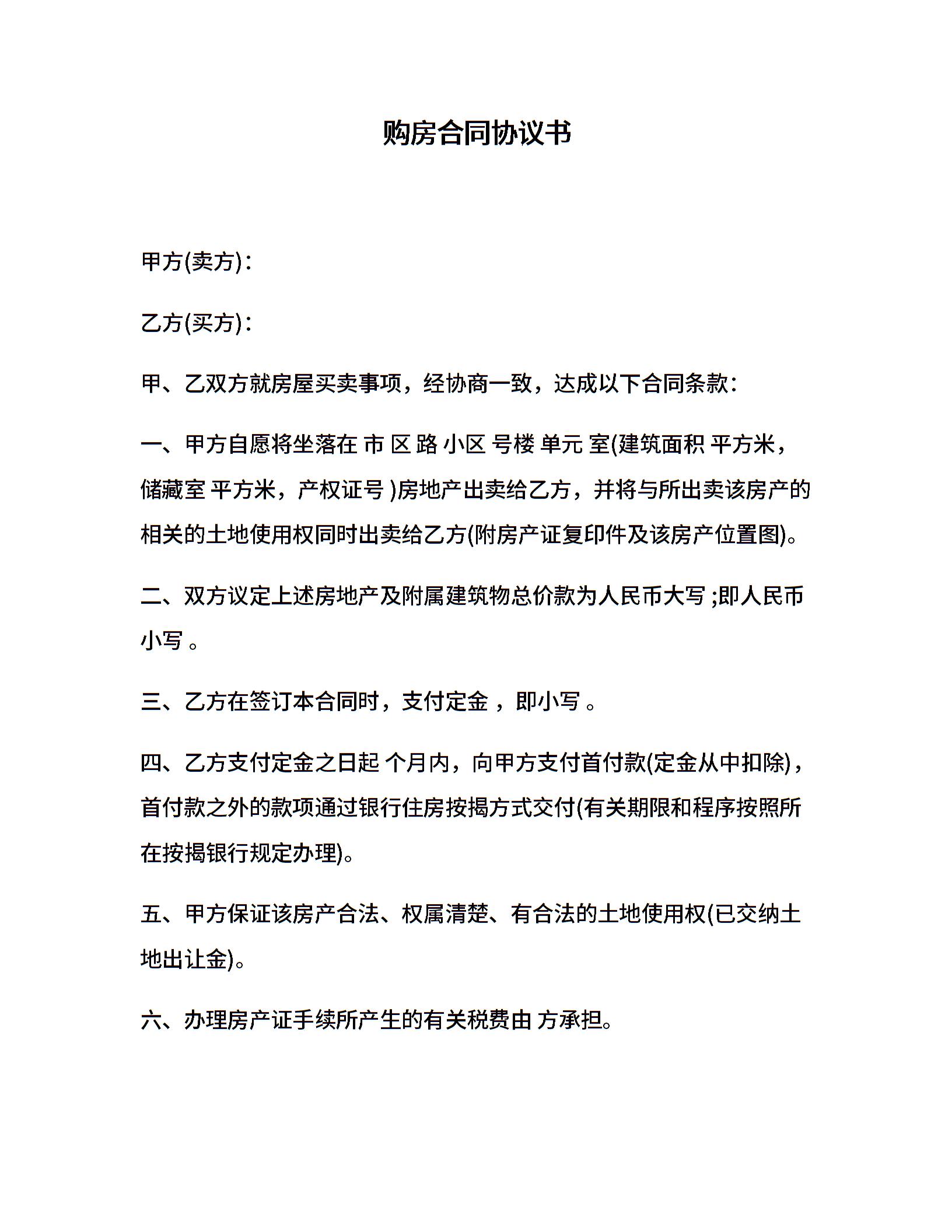 购房合同协议书范本