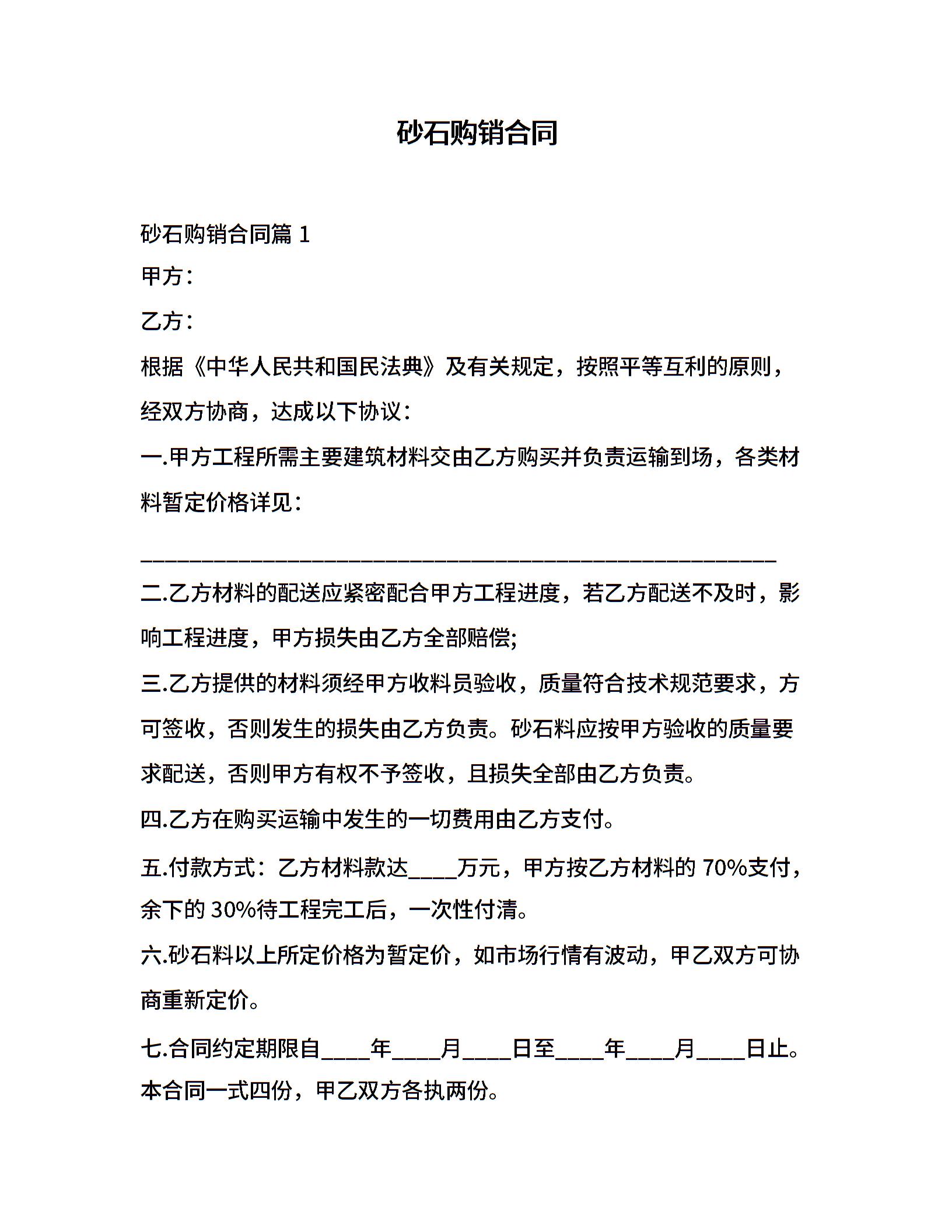 砂石购销合同