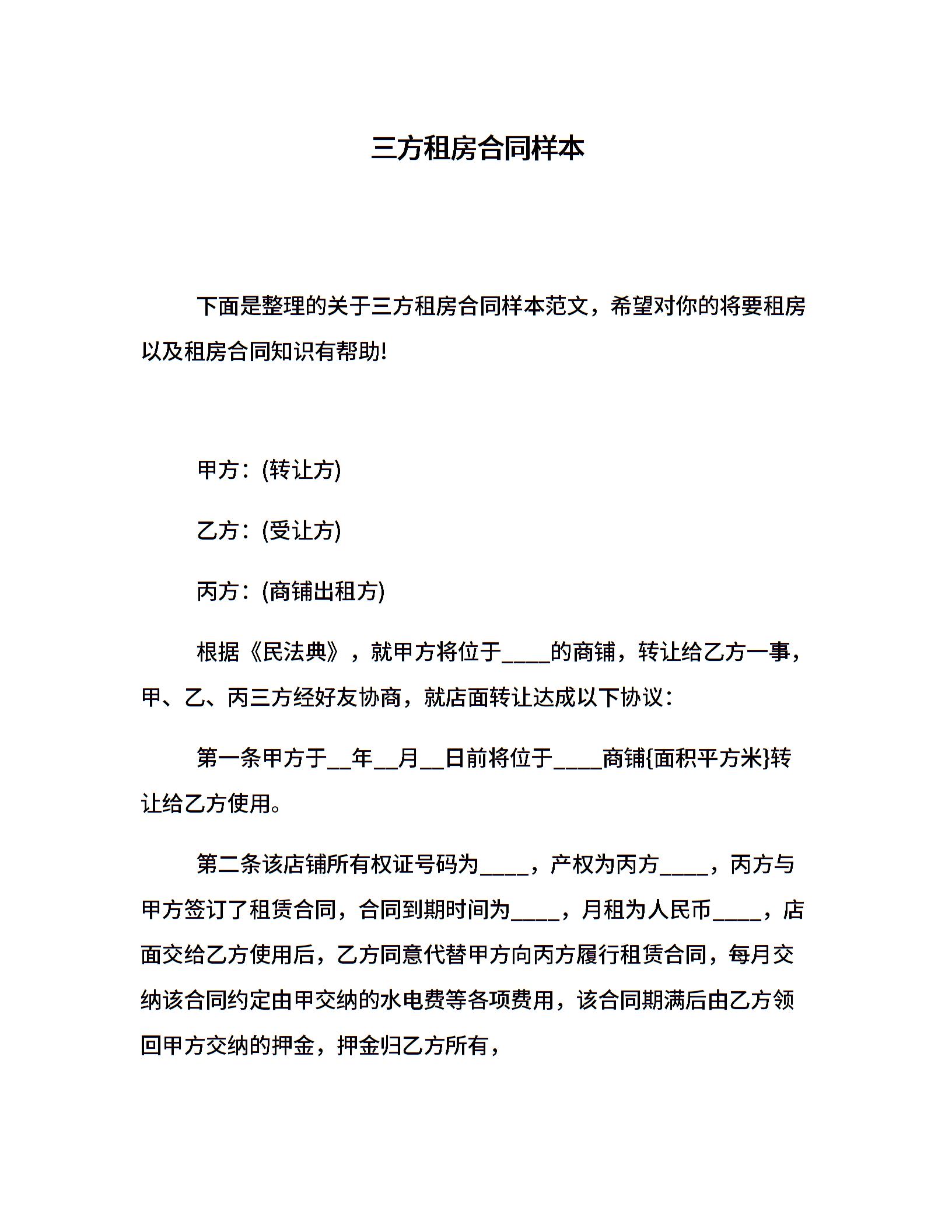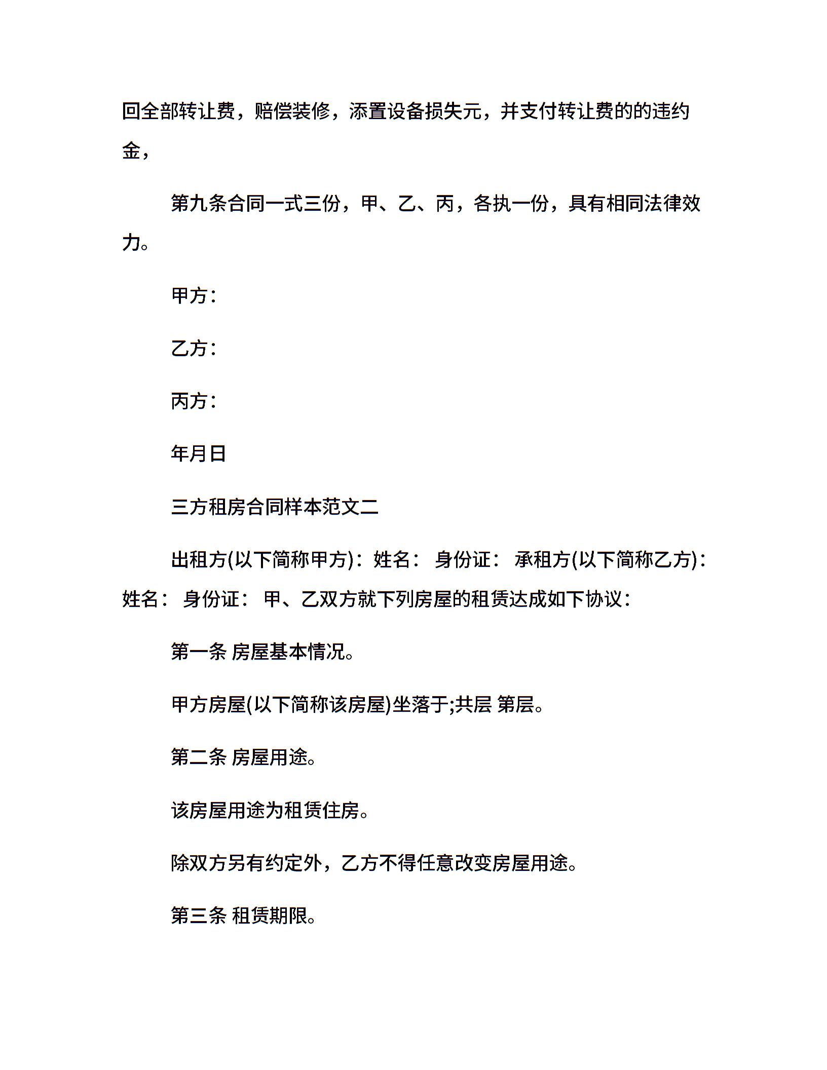 三方租房合同样本