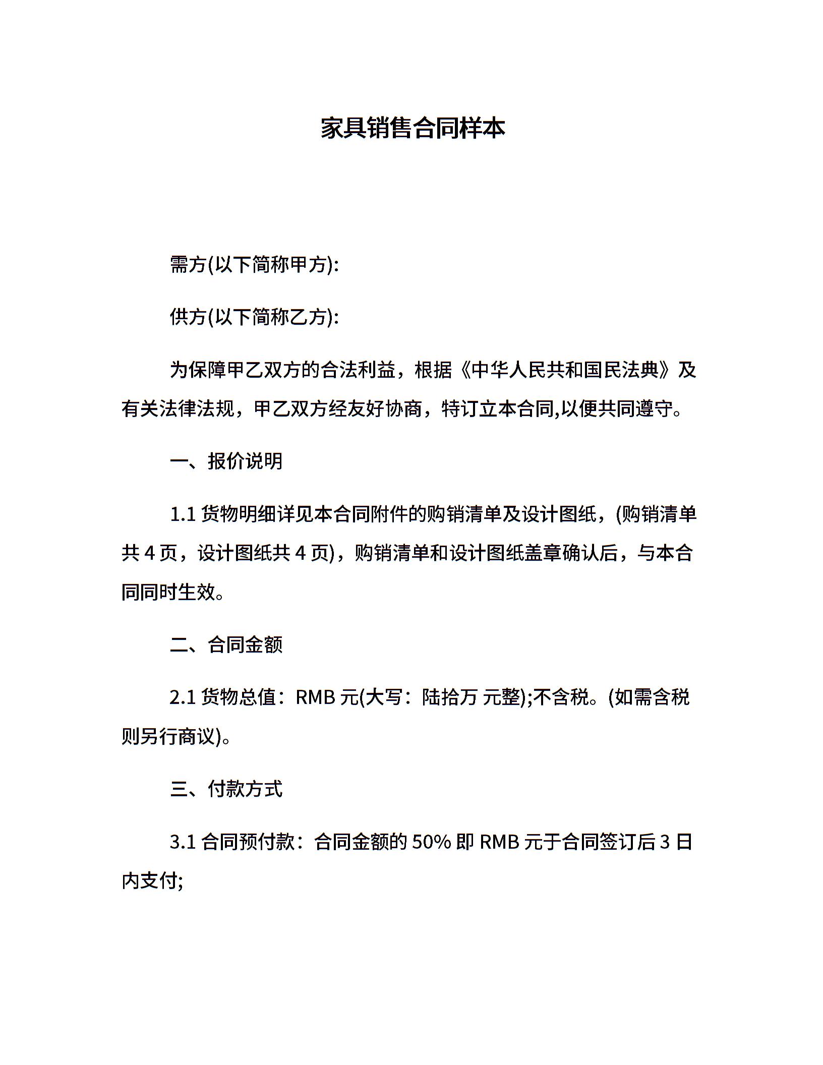 家具销售合同样本